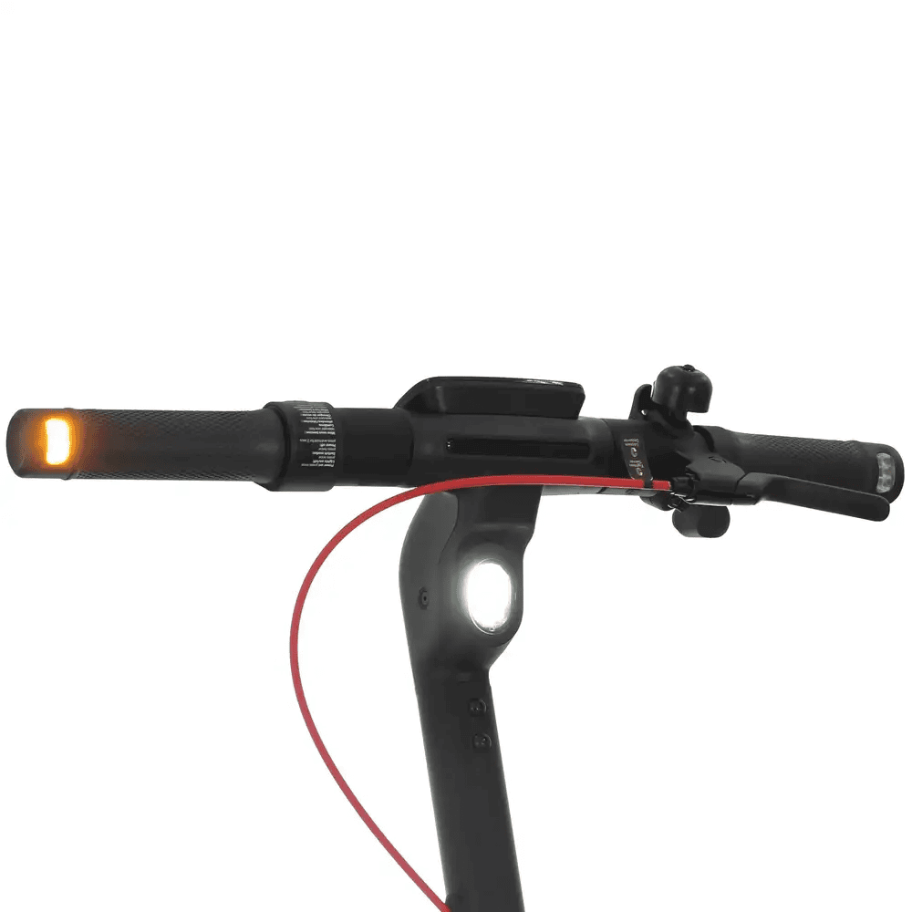 Оснащение. Дисплей, приложение Ninebot, круиз-контроль, передняя фара, задний стоп-сигнал, LED-подсветка (похоже, добавили по сравнению с обычным E3), звонок, подножка. Поворотников нет — маневры рукой, как и на базовой версии.