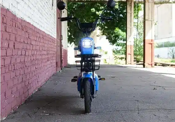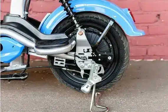 Тормозная система с барабанными тормозами на переднем и заднем колёсах надёжно справляется с задачей безопасного торможения. Элегантный синий цвет подчеркивает современный стиль электроскутера, а компактные размеры (1550 x 660 x 1210 мм) и вес в 50 кг делают его удобным для хранения и транспортировки.