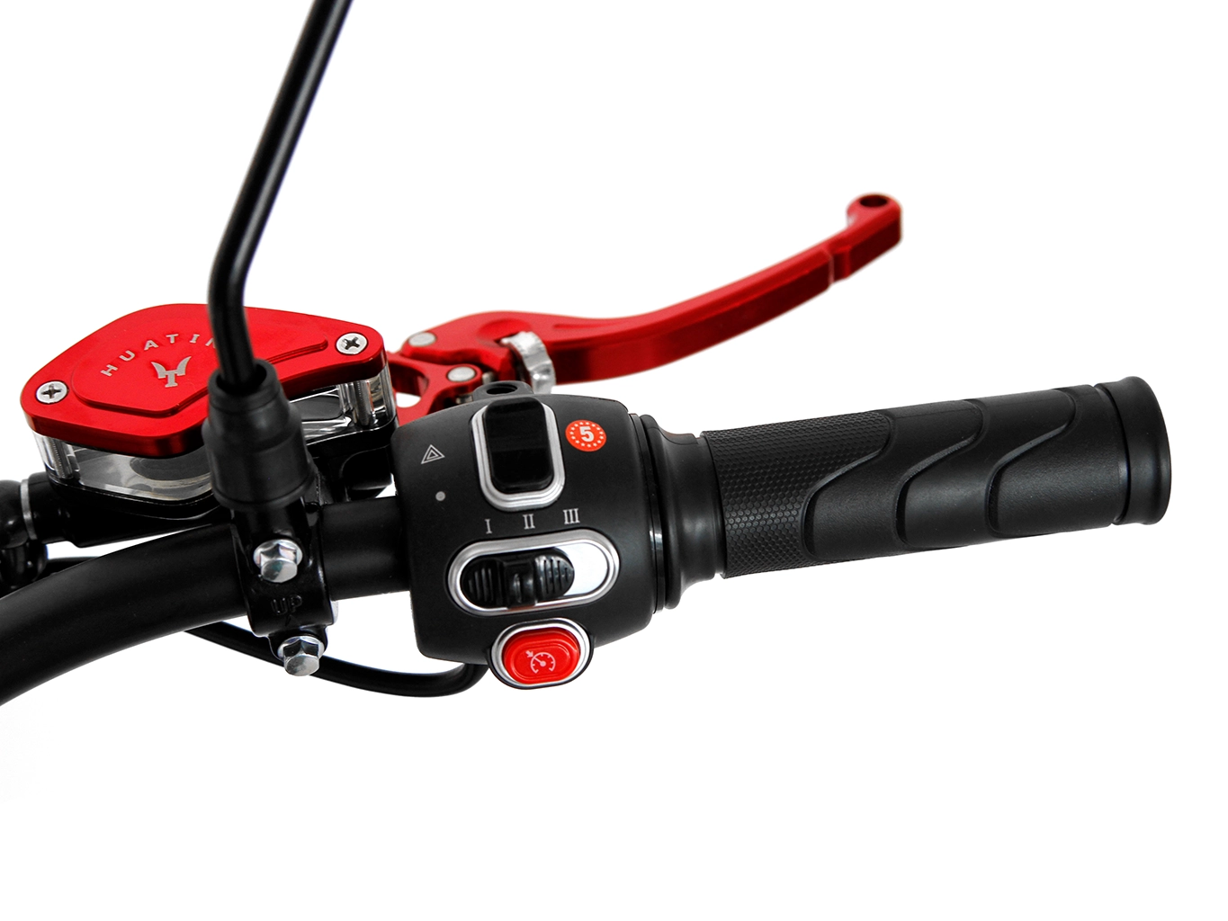 Особого внимания заслуживают дополнительные функции: встроенные стробоскопы, держатель для телефона с функцией зарядки, а также крылья с рёбрами жёсткости, которые минимизируют шум и вибрацию при езде по неровной дороге. Внутреннее пространство под сиденьем используется максимально рационально — здесь расположен герметичный отсек с полной гидроизоляцией аккумуляторов.