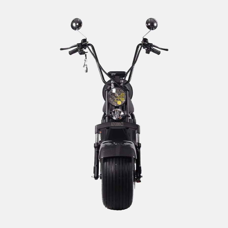 Kugoo C3 оснащен яркой передней фарой, стоп-сигналом и поворотниками для безопасного движения в тёмное время суток, а информативный дисплей отображает скорость, заряд батареи и пробег. Этот электрический скутер подходит для широкого круга пользователей — от городских жителей, ценящих практичность, до любителей загородных поездок, ищущих сочетание мощности, автономности и комфорта.