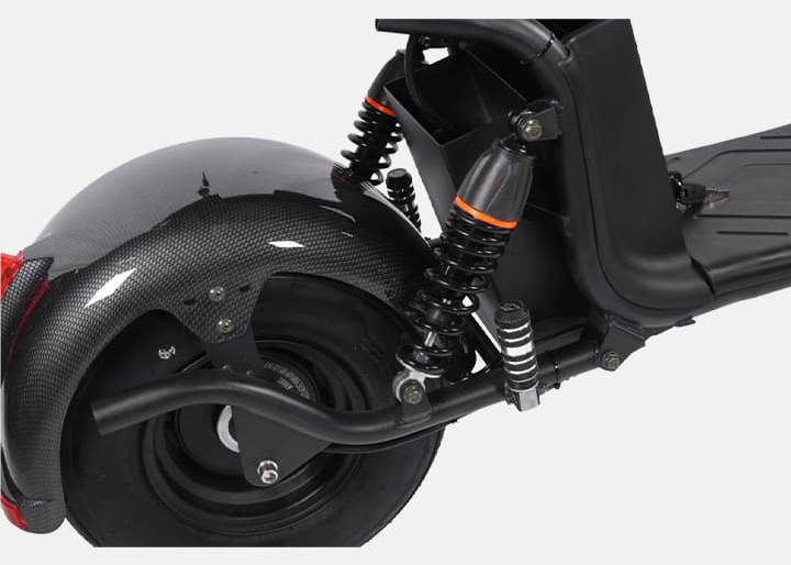 Конструкция Kugoo C3 сочетает надёжность и комфорт: усиленная рама выдерживает нагрузку до 200 кг, а 12-дюймовые пневматические колёса обеспечивают устойчивость и плавность хода на любом покрытии. Гидравлические дисковые тормоза гарантируют безопасное и эффективное торможение на высокой скорости, а просторное мягкое сиденье с амортизацией делает поездки комфортными даже на большие расстояния.