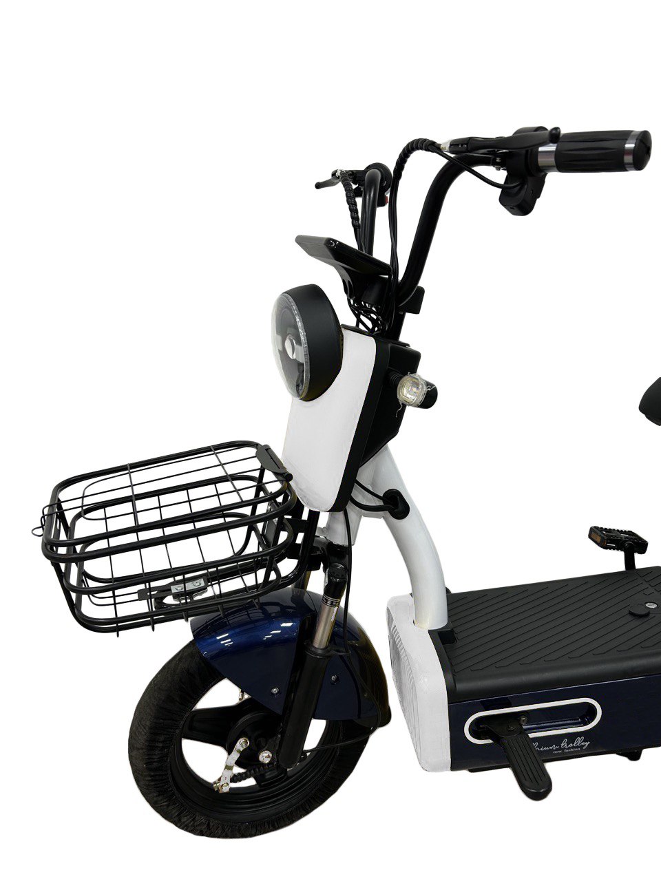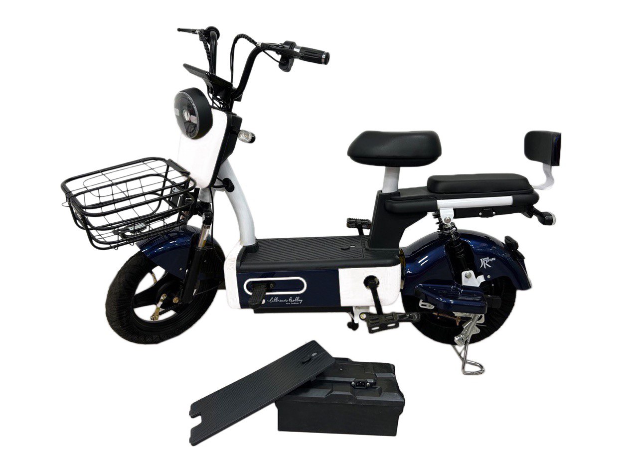 - В комплект входят зеркала заднего вида, корзина для перевозки небольших вещей и педали, что добавляет удобства в повседневных поездках.