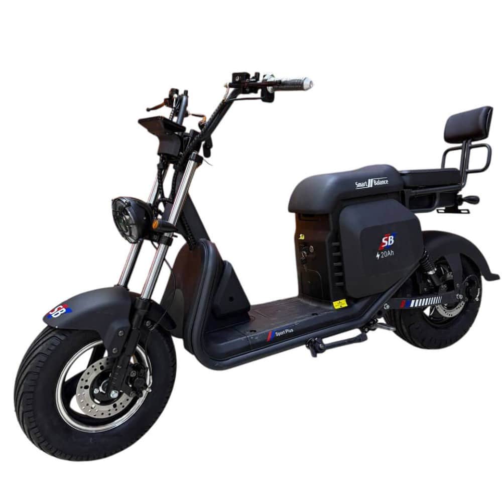 SmartBalance Sport Plus – современный электроскутер, сочетающий мощность и маневренность для комфортного передвижения по городу. С двигателем мощностью 2000 Вт и аккумулятором 60В 20Ач он обеспечивает запас хода до 40 км, развивая скорость до 25 км/ч. Гидравлические дисковые тормоза на обоих колесах гарантируют безопасное торможение, а усиленная стальная рама выдерживает нагрузку до 200 кг, делая модель идеальной для поездок вдвоем.