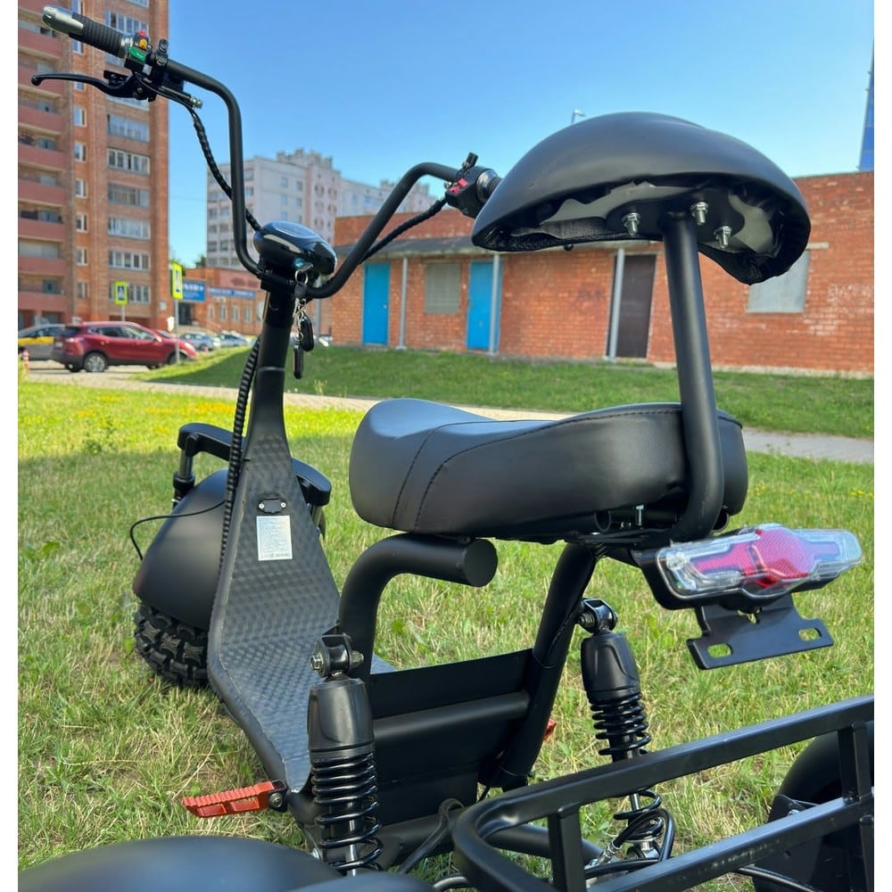 Модель отличается повышенной комфортностью благодаря передней и задней амортизации, а также эргономичному двухместному сиденью. В стандартной комплектации предусмотрены зеркала заднего вида, полноценная светотехника (фары, поворотники, стоп-сигнал) и сигнализация. Особенностью X7 Trike является его исключительная устойчивость, делающая его идеальным выбором для пожилых пользователей и тех, кто ценит безопасность при движении.