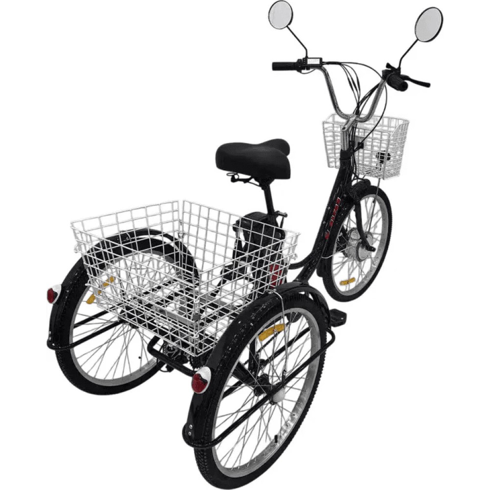 AVM E-ALFA TRIKE 24 — удобный и устойчивый электротрицикл, созданный для комфортных передвижений по городу и пригородным дорогам. Мотор-колесо мощностью 250 Вт обеспечивает уверенный разгон, позволяет легко преодолевать подъёмы и справляться с небольшими неровностями дорожного покрытия. Максимальная нагрузка до 150 кг делает модель практичной как для личных поездок, так и для перевозки небольшого груза.