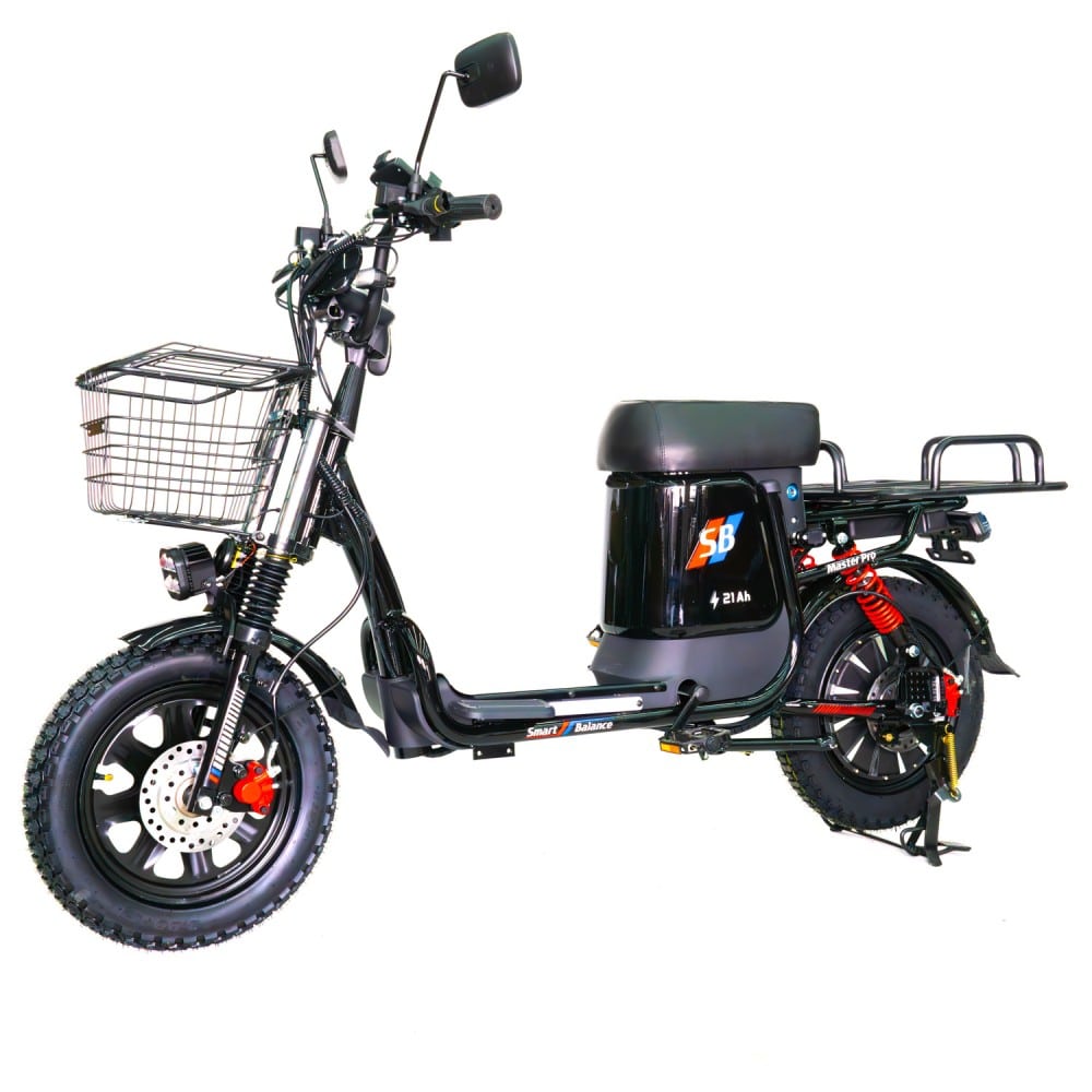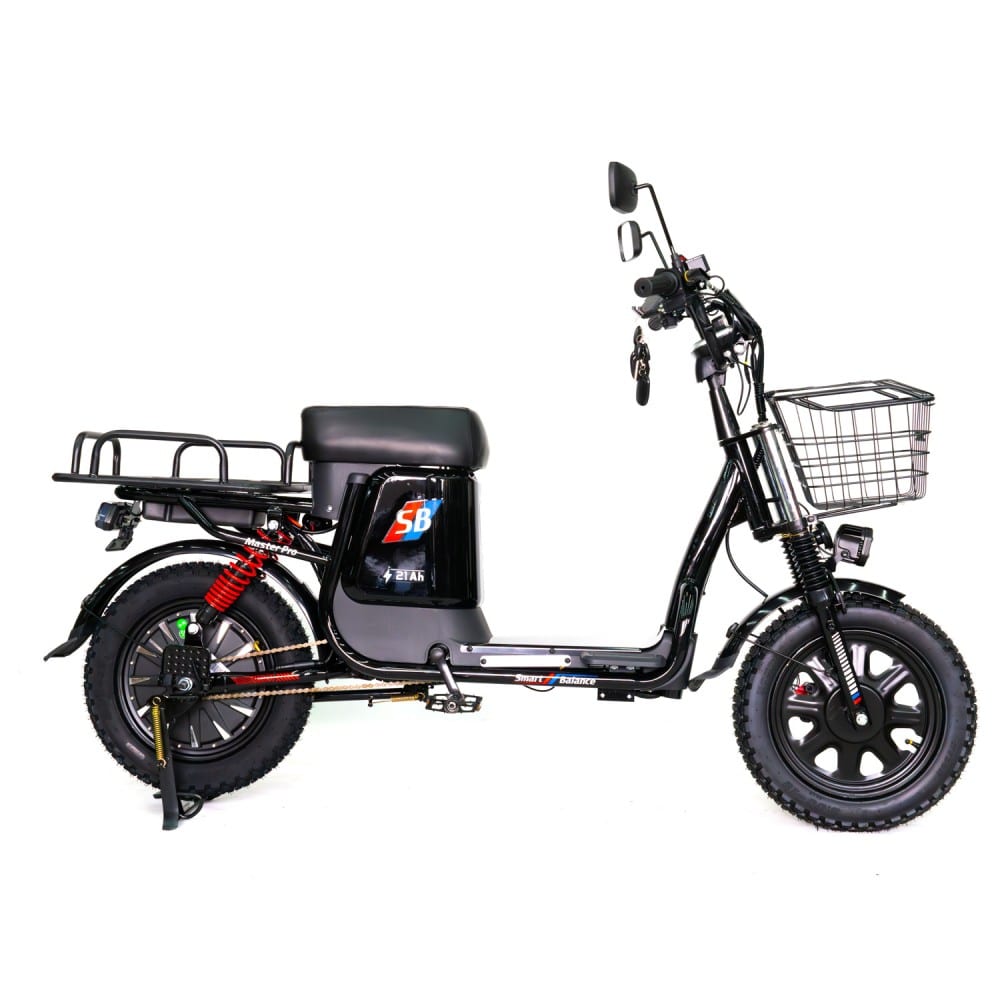 Конструкция Master Pro сочетает практичность и надёжность: прочная стальная рама Hi-ten, 16-дюйсовые колёса с внедорожным протектором, двухсторонняя амортизация и гидравлические дисковые тормоза. Велосипед комплектуется всем необходимым для города: передней корзиной, задним багажником, зеркалом, LED-фарой и подножкой. Грузоподъёмность 120 кг делает его подходящим как для индивидуальных поездок, так и для перевозки небольших грузов.