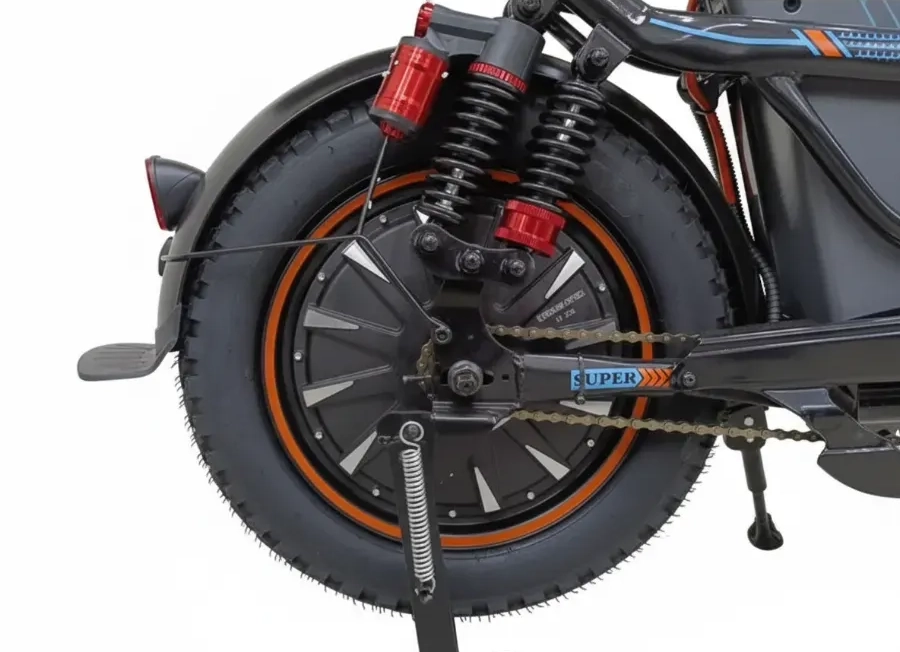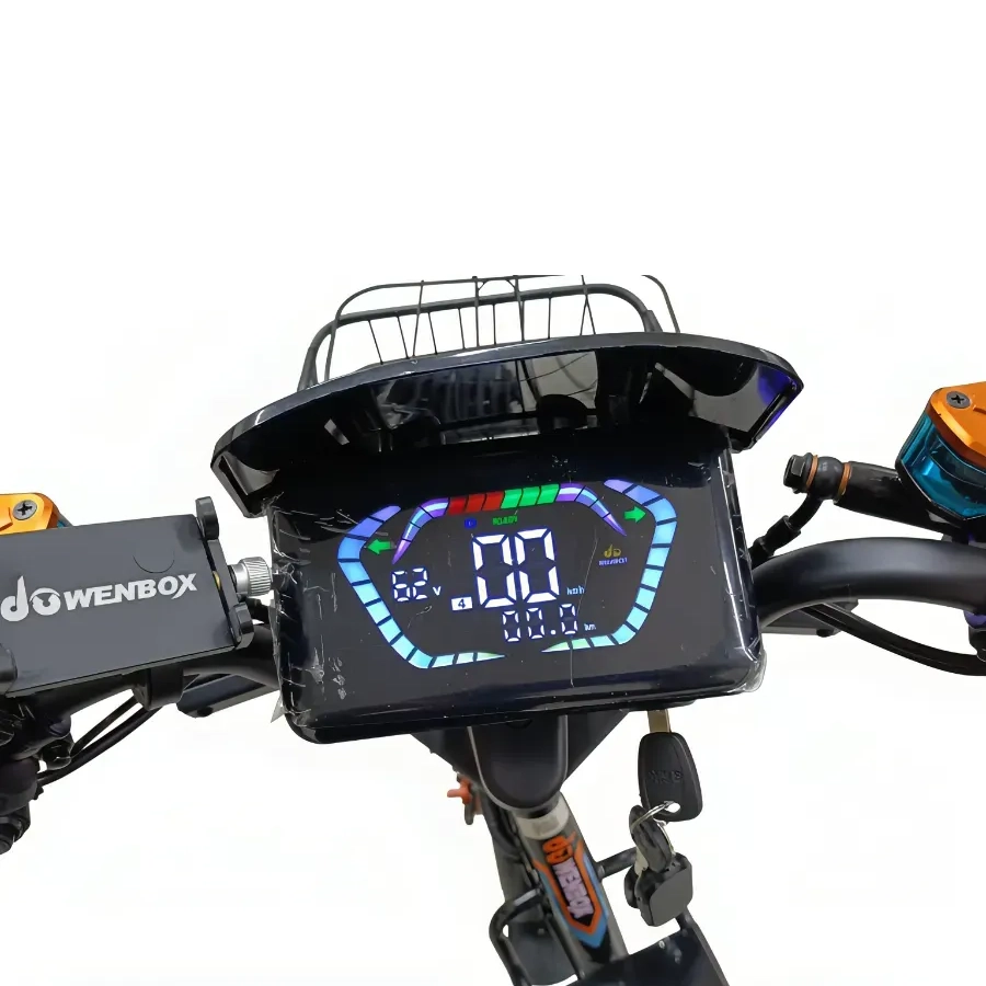 Второй — увеличенная емкость аккумулятора 60V30A, которая дает запас хода до 60 км. Вы получаете свободу передвижения на весь день без необходимости искать розетку.