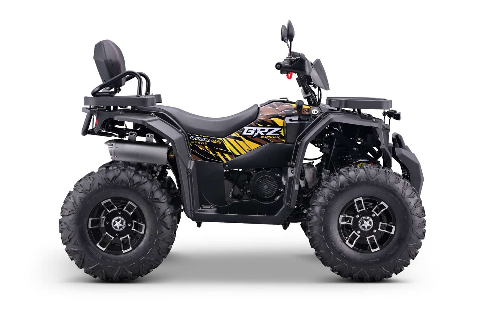 BRZ Barkhan 200 Pro – это российский утилитарный квадроцикл, созданный для эксплуатации в самых сложных дорожных условиях. Оснащенный 180-кубовым 4-тактным двигателем (11 л.с.) с воздушно-масляным охлаждением и балансирным валом, он сочетает в себе надежность, неприхотливость и достаточную мощность для преодоления бездорожья. Автоматическая трансмиссия и двойная система запуска (электростартер + кикстартер) обеспечивают простоту управления и гарантированный запуск в любых условиях.