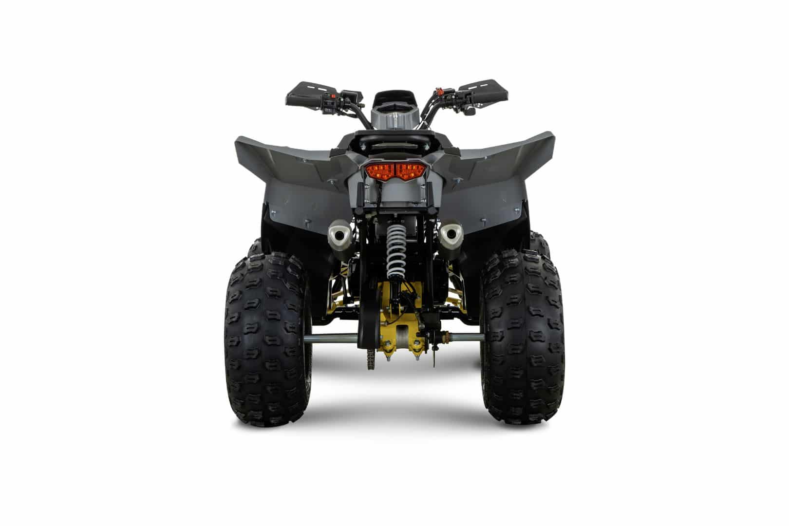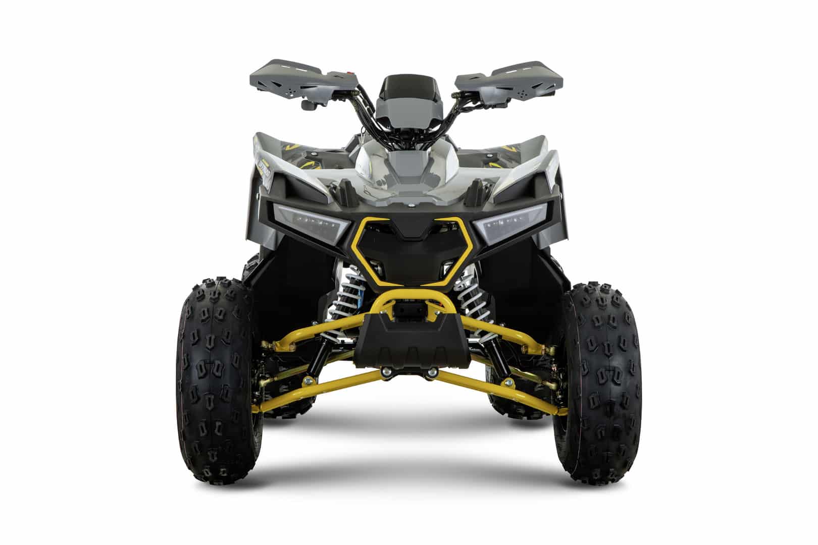 Безопасность является приоритетом в этой модели: система родительского контроля позволяет ограничивать максимальную скорость и дистанционно заглушать двигатель, обеспечивая спокойствие родителей. Светодиодная оптика улучшает видимость в сумерках, а информативный дисплей отображает все необходимые данные. Компактные габариты (колесная база 1015 мм) и низкая высота по седлу (700 мм) делают квадроцикл удобным и безопасным для детей.