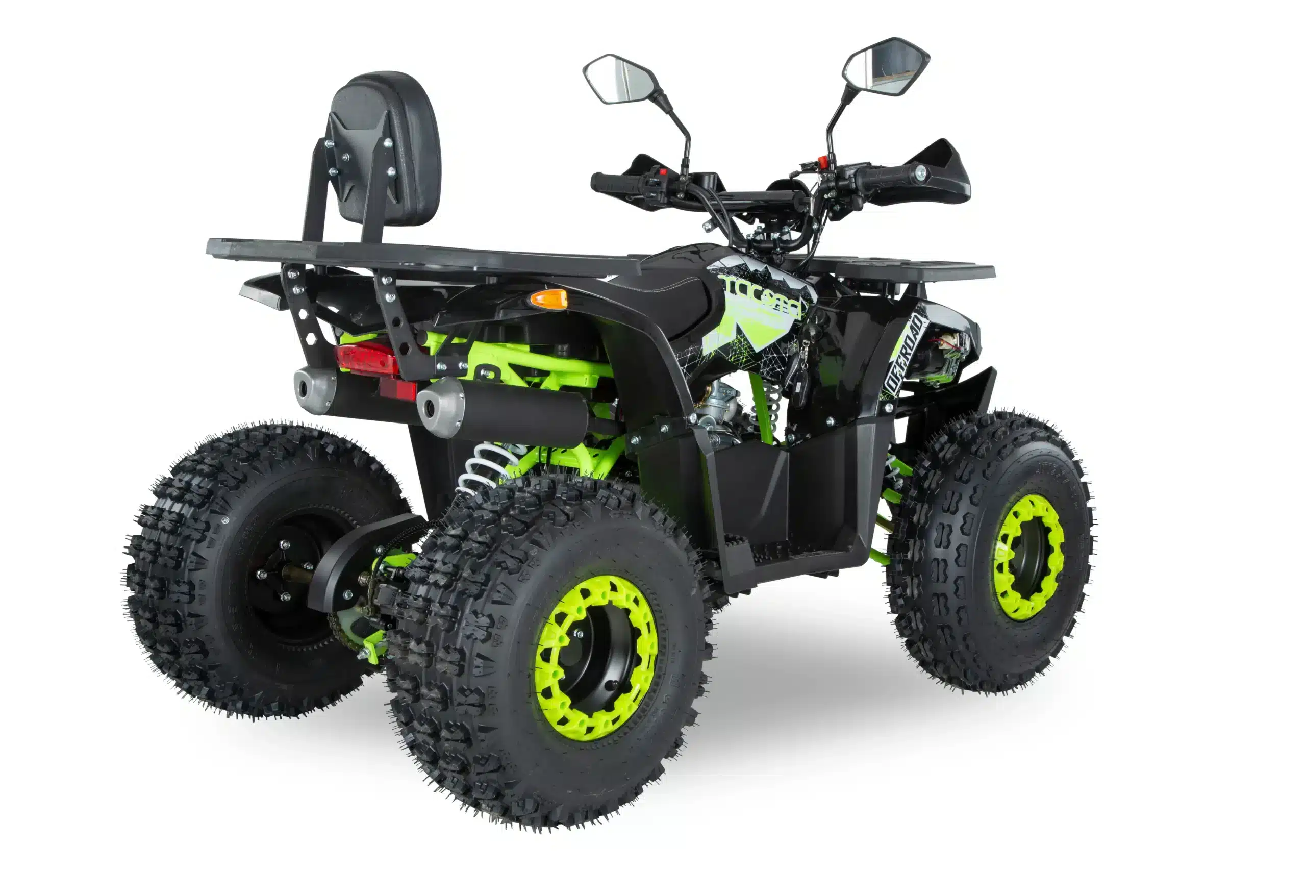 Металлические багажники спереди и сзади позволяют перевозить полезный груз, а литые диски делают квадроцикл более устойчивым на дороге. Система ограничения скорости дает возможность родителям контролировать максимальную скорость, что делает этот квадроцикл безопасным выбором для молодых райдеров.
