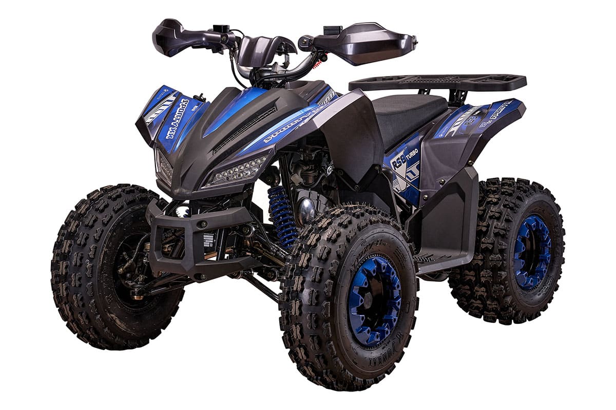 YACOTA SPORTY XX 125 оснащен шприцуемой подвеской, маятниковой задней подвеской с моноамортизатором и 2-х рычажной передней подвеской с шаровыми опорами, что позволяет ему справляться с неровностями дорог и обеспечивать мягкость хода. Широкий багажник, защита рук, прочные дисковые тормоза и светодиодные фары добавляют удобства и безопасности, а песочная резина повышенной проходимости помогает квадроциклу уверенно двигаться по сложным участкам.