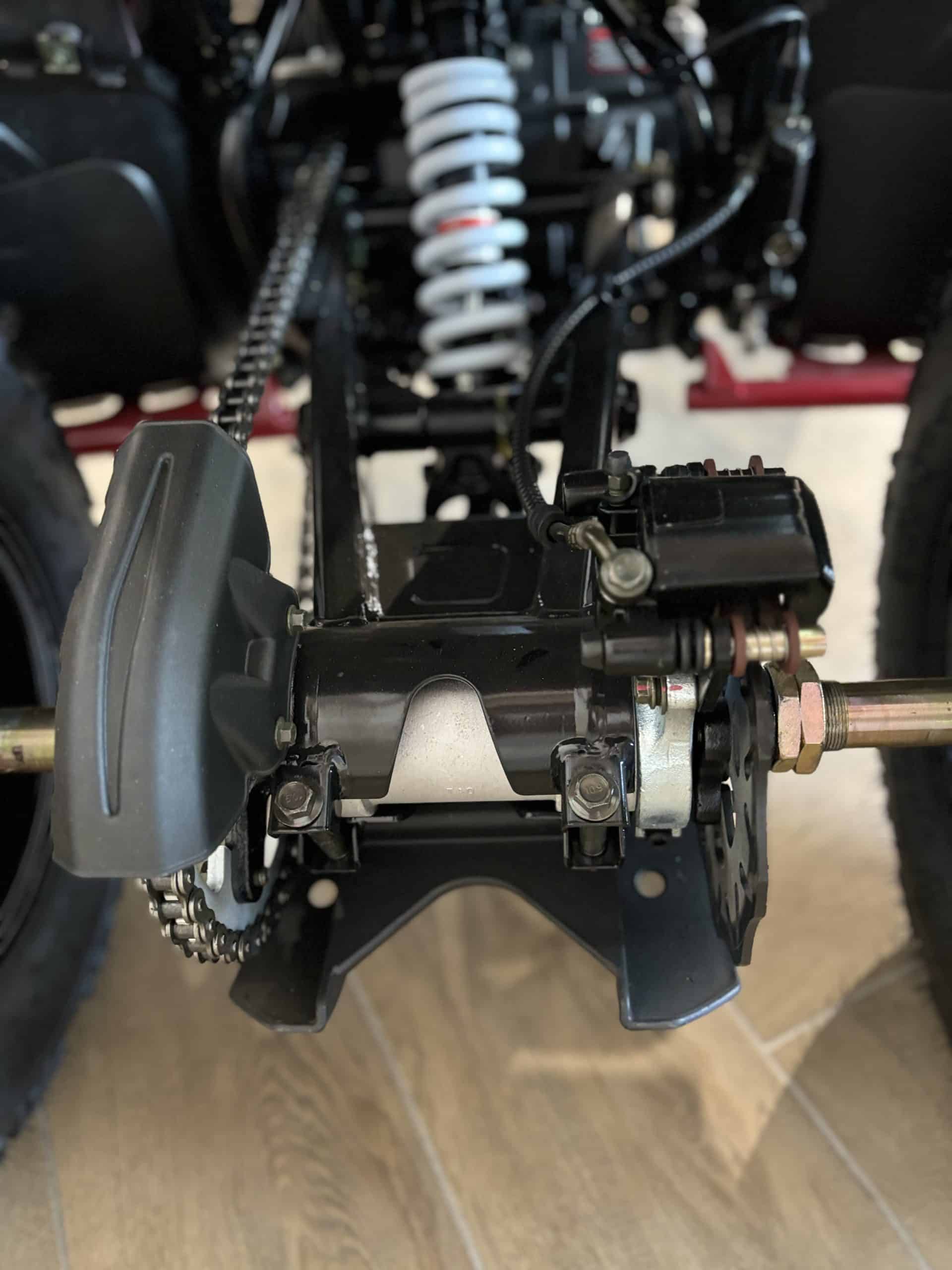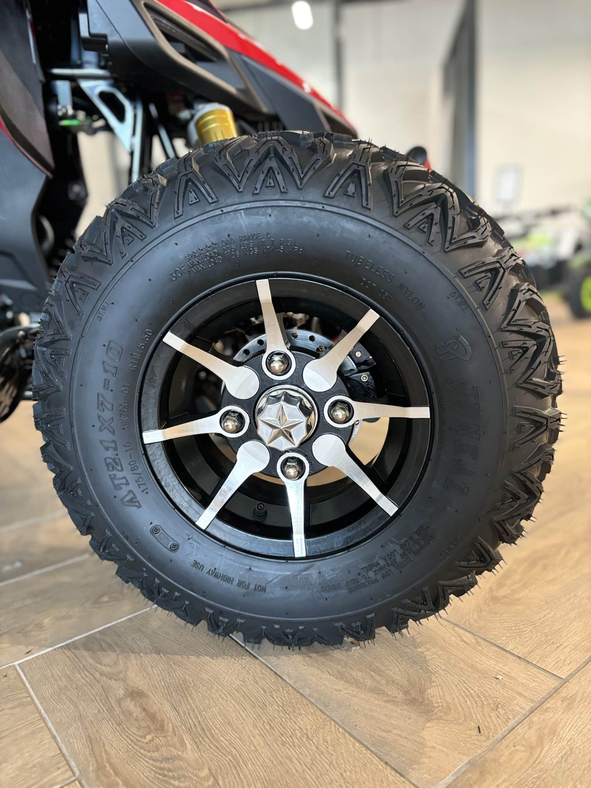 Особенности комплектации YACOTA TYPHOON 250LD включают литые диски, которые придают квадроциклу современный вид и повышают его устойчивость, а также защиту рук, обеспечивающую комфорт в сложных условиях. Родительский контроль позволяет установить ограничения для молодых водителей, делая квадроцикл безопасным для новичков. Линзованные фары улучшают видимость в темное время суток, а электронная приборная панель предоставляет всю необходимую информацию о состоянии квадроцикла.