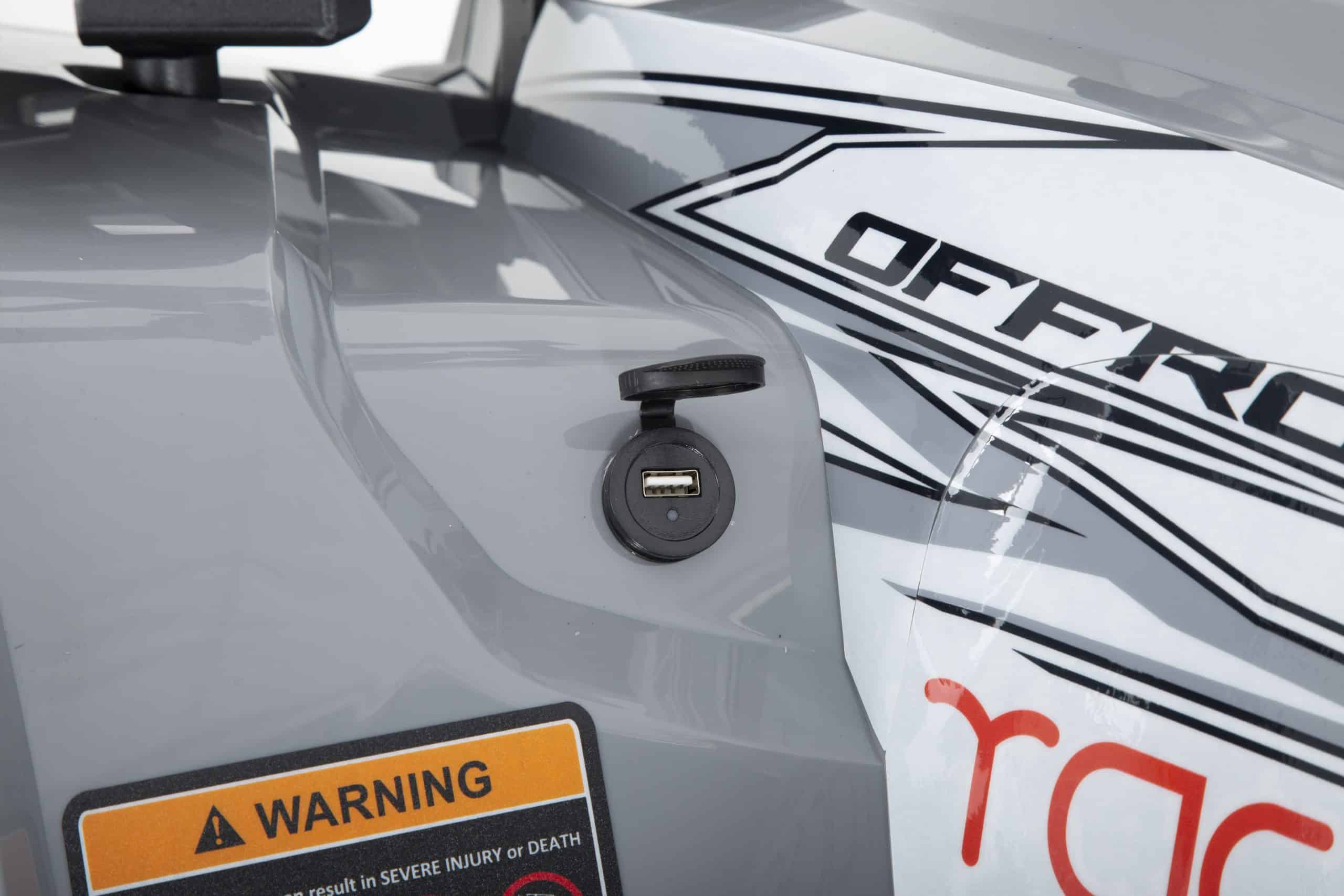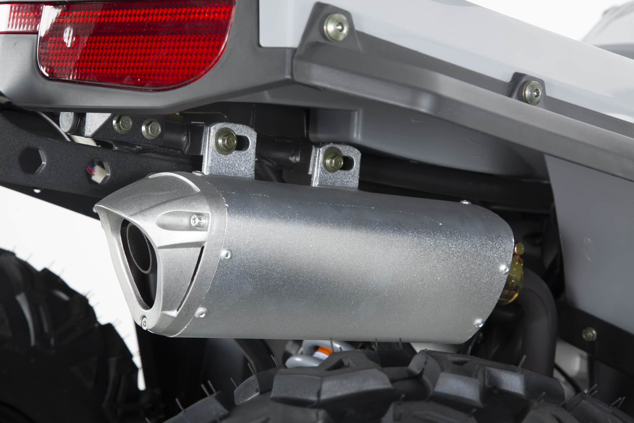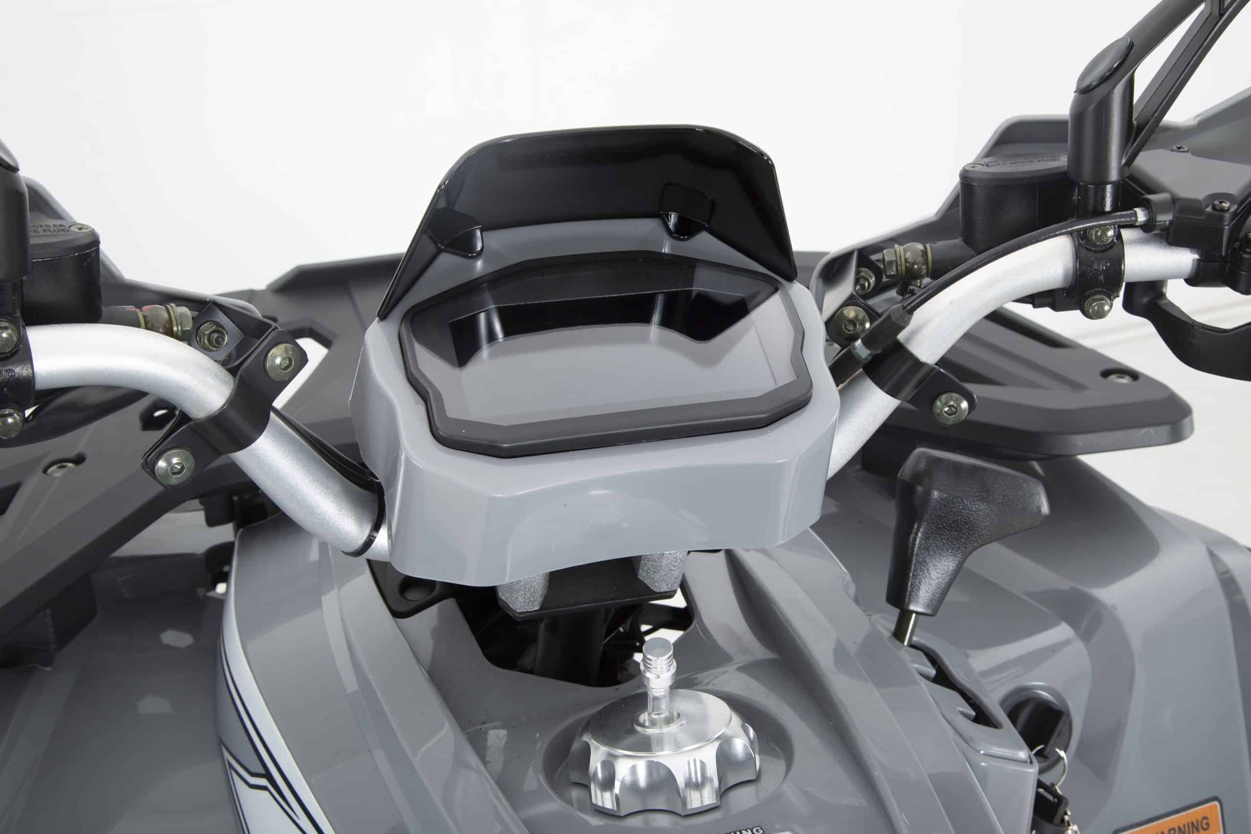 В комплект входят защитные элементы, такие как защита рук, а также зеркала заднего вида и удобная спинка для пассажира. Фаркоп позволяет использовать квадроцикл для перевозки небольших грузов, а алюминиевая выхлопная труба придает долговечность и эстетический вид. Спидометр и датчик уровня топлива помогают контролировать показатели квадроцикла, а USB-выход и зарядное устройство для аккумулятора делают его более удобным для повседневного использования. Поворотники обеспечивают безопасность при движении по дороге.