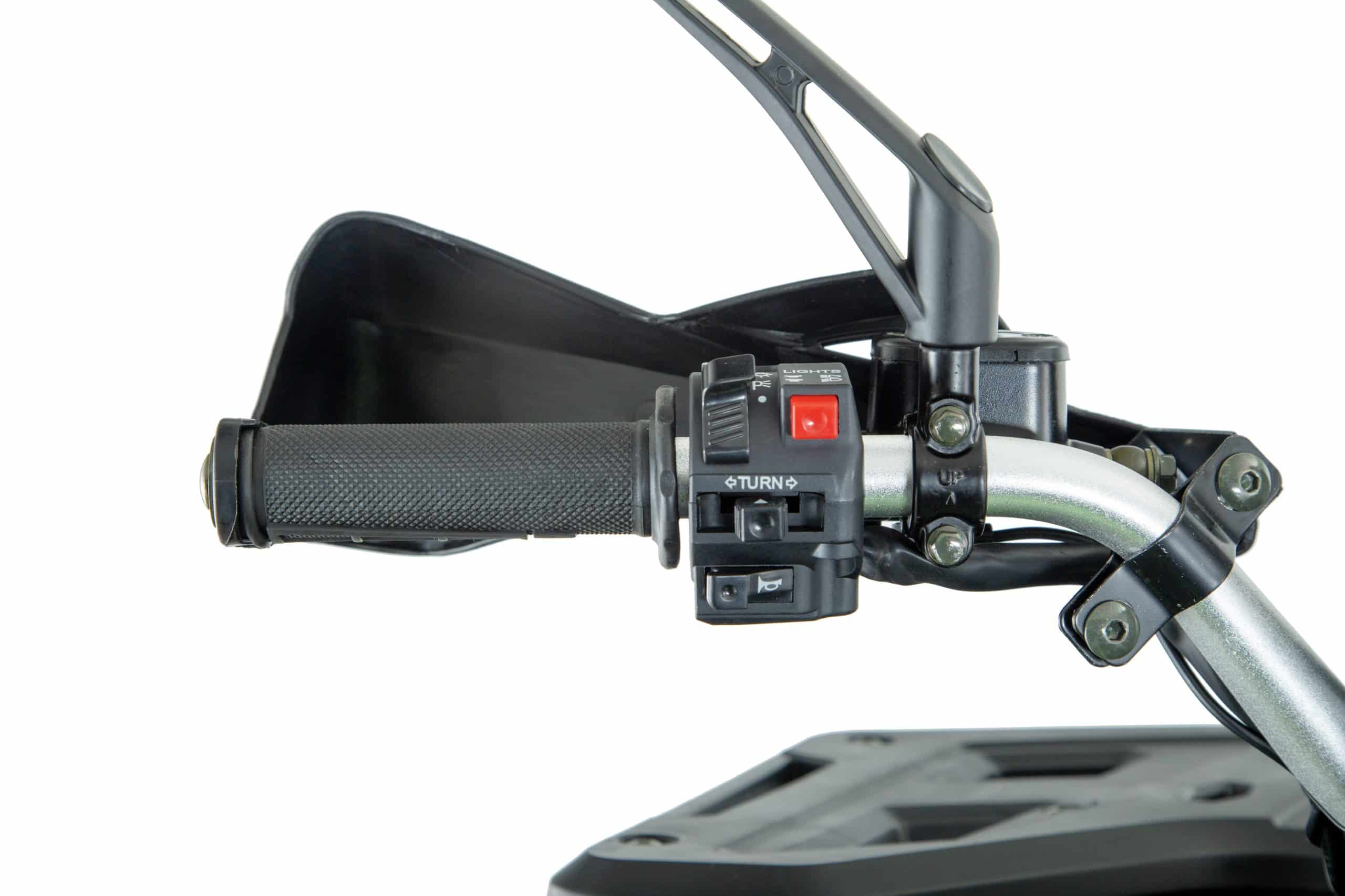 Комфорт пассажира обеспечивается спинкой для пассажира и зеркалами заднего вида, а также газомасляными амортизаторами, которые обеспечивают отличную устойчивость и комфорт на любых покрытиях. Защита рук и алюминиевая выхлопная труба добавляют элемент безопасности и стиля.