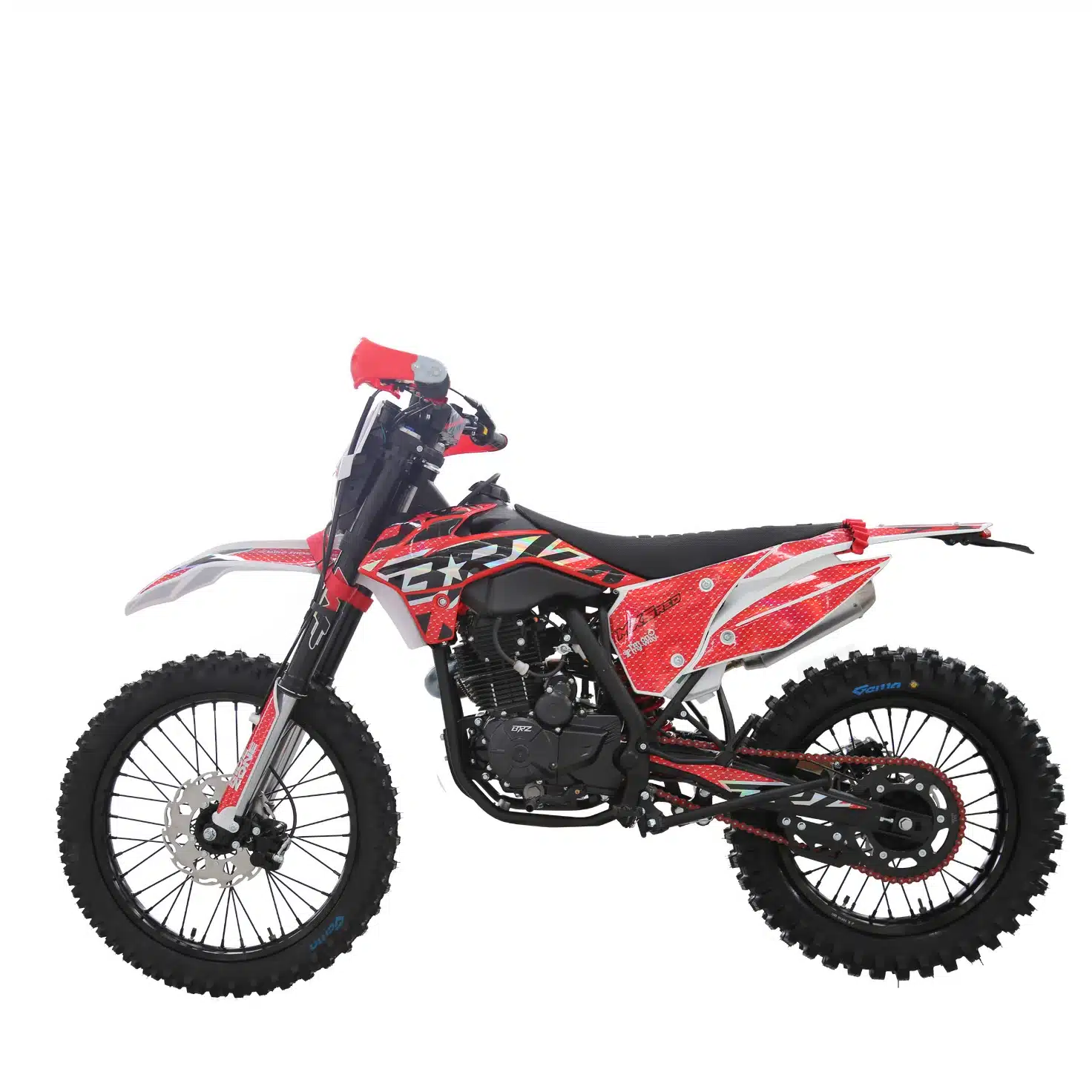 Модель отличается компактными размерами: колесная база 1350 мм и высота по седлу 870 мм делают ее идеальным выбором для райдеров ростом от 160 см, обеспечивая легкое управление и уверенность на сложных участках. Пятиступенчатая коробка передач предлагает четкие переключения, а комбинированный запуск (электростартер и кик-стартер) исключает риск остаться без движения даже при разряженном аккумуляторе. Колесная формула 21/18 дюймов обеспечивает проходимость, а регулируемая задняя подвеска с прогрессивной характеристикой адаптируется к любым условиям.