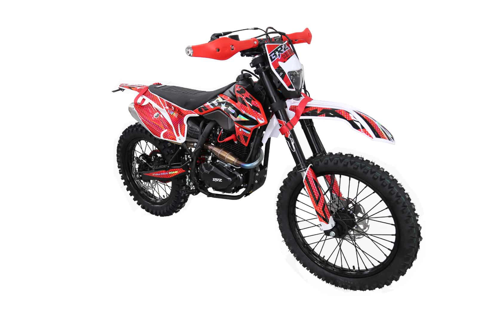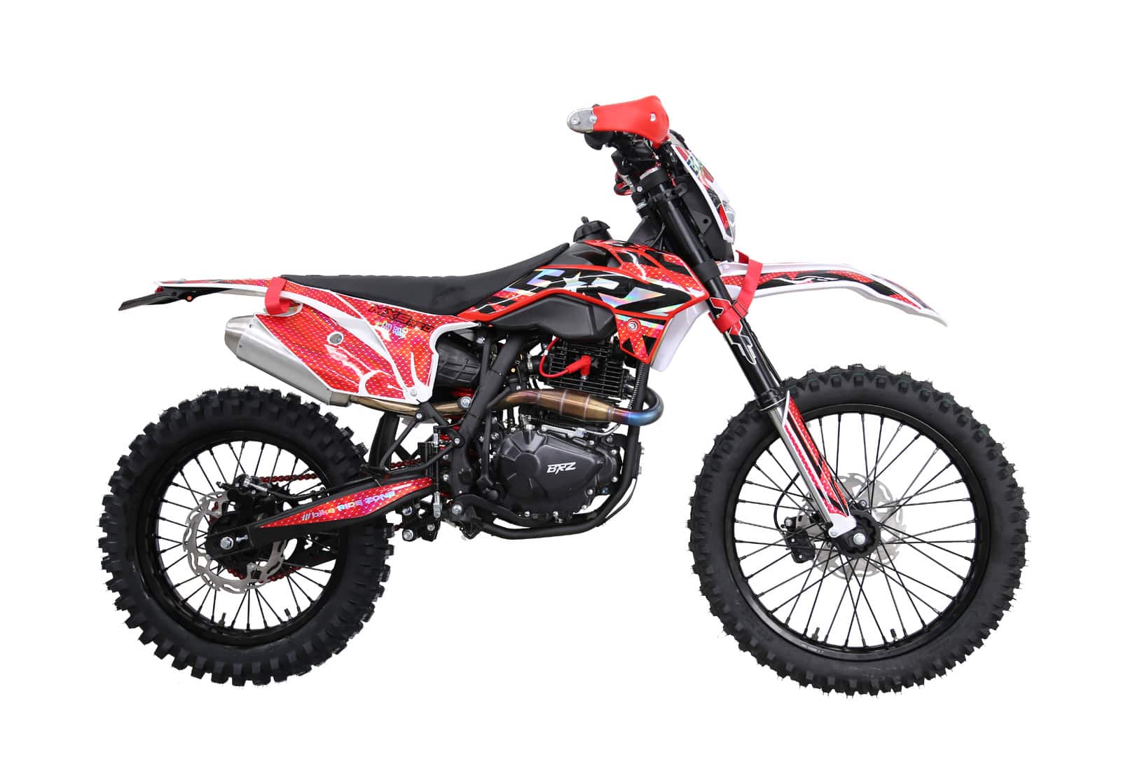 BRZ MX5 PR300 RED укомплектован всем необходимым для безопасного и комфортного катания: мощная LED-фара, защита рук и фрезерованные откидные рычаги, алюминиевые подножки и лапка КПП. Этот мотоцикл сочетает в себе агрессивный дизайн, практичность и надежность, предлагая максимум удовольствия от покорения бездорожья по доступной цене.