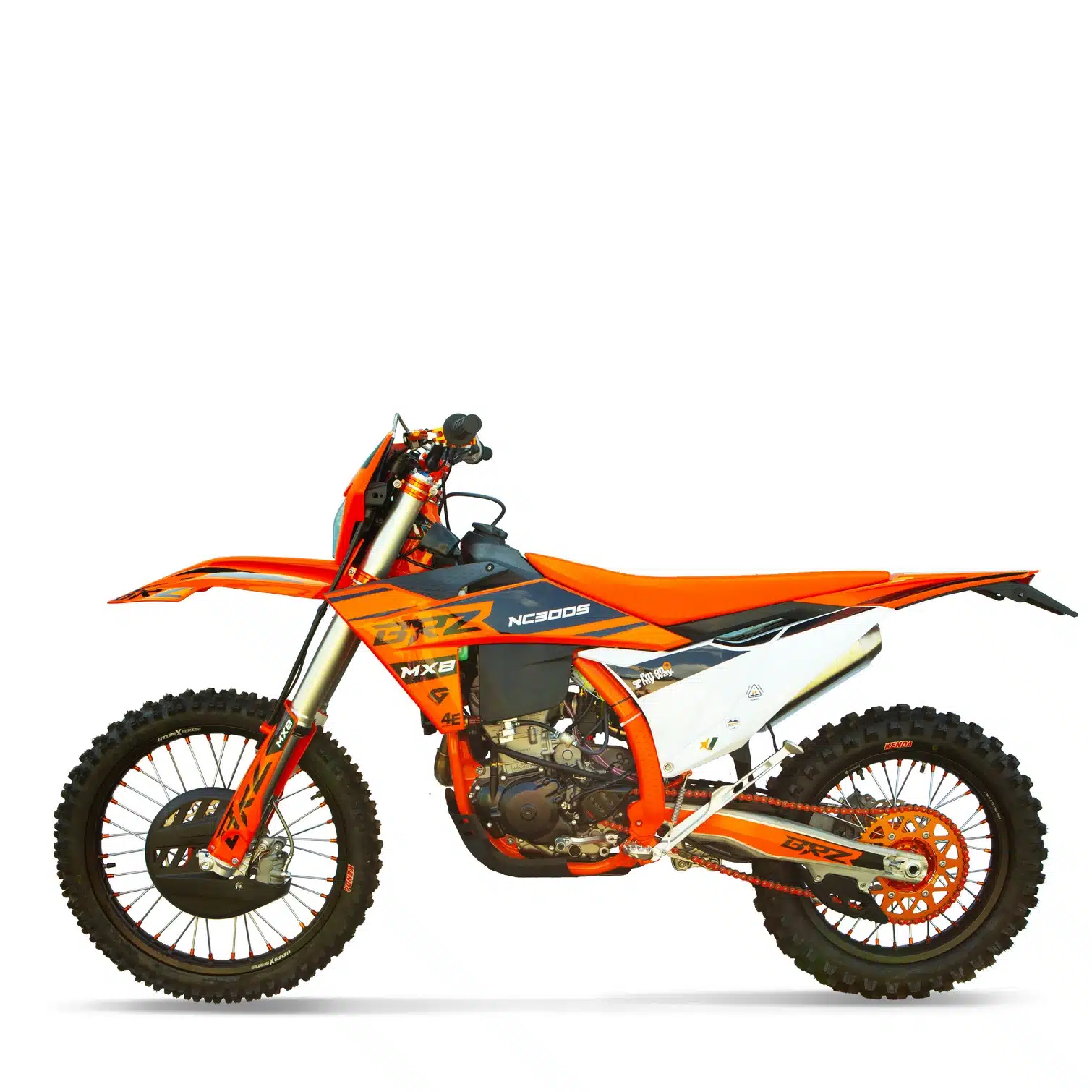 BRZ MX8 NC300s 24 — это отлично сбалансированный полноразмерный эндуро-мотоцикл, созданный для опытных райдеров. Он построен на абсолютно новой жесткой дуплексной хром-молибденовой раме типа KTM 2024 года, в которой двигатель расположен ниже, что обеспечило низкий центр тяжести, легкую и точную управляемость. Сердцем модели является мощный четырехтактный двигатель Zongshen ZS182MN объемом 300 см³, развивающий 38 л.с. и работающий в паре с карбюратором NIBBI RACING PWK 34 для максимальной отзывчивости и производительности.