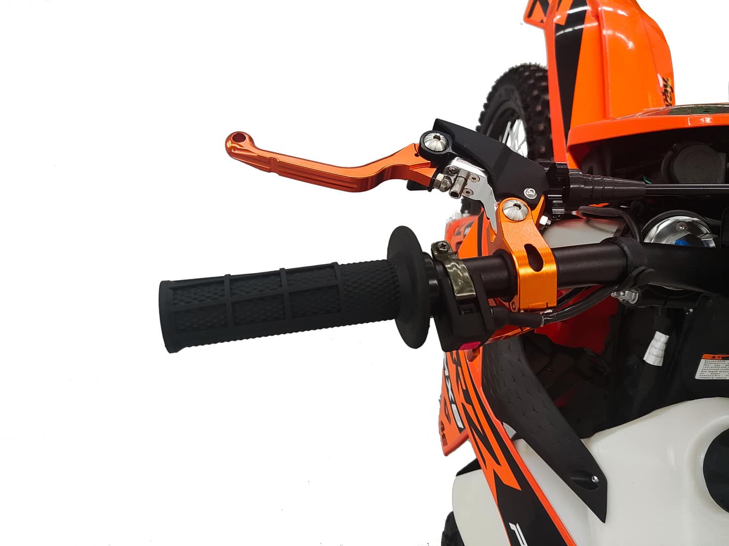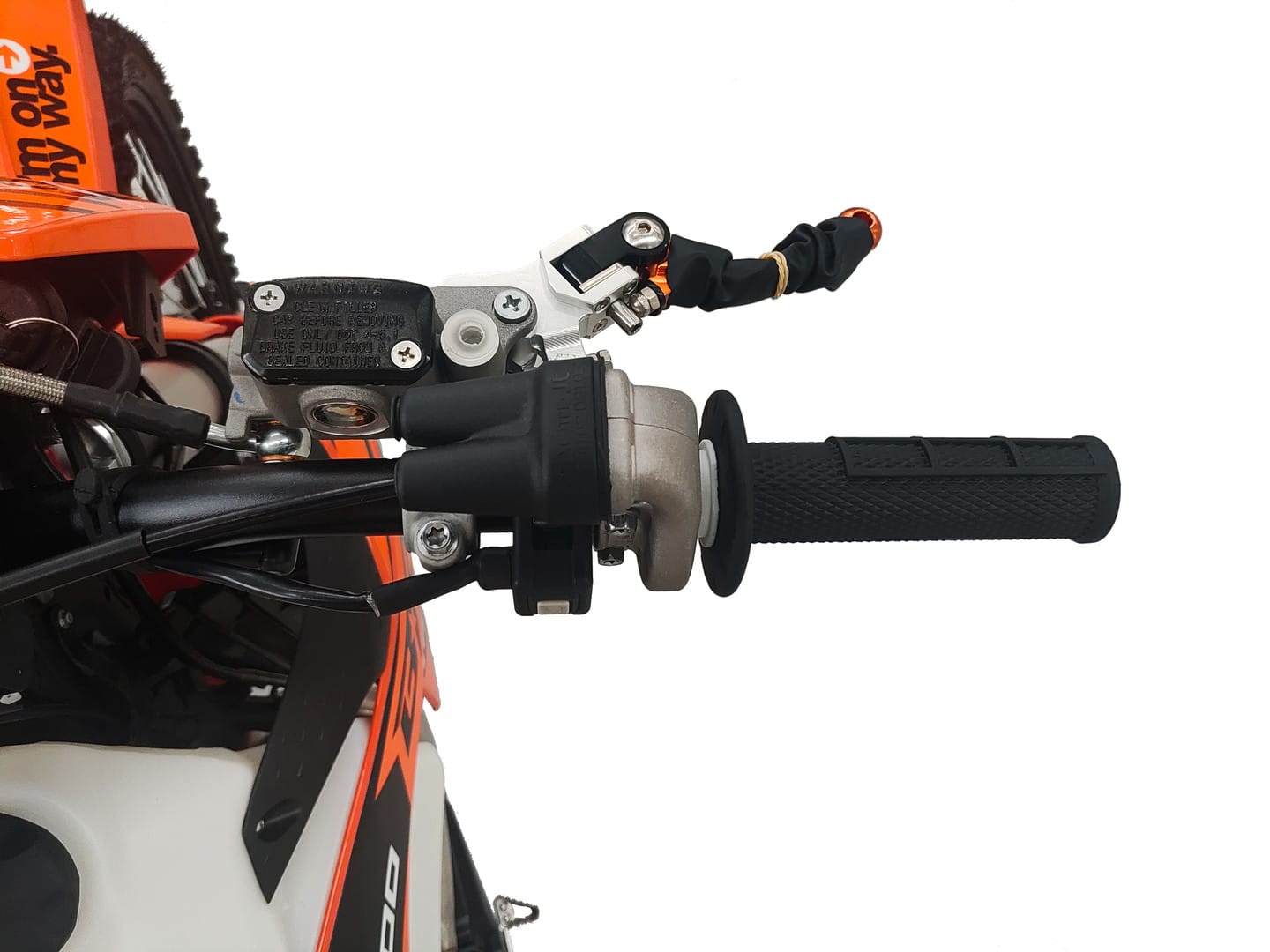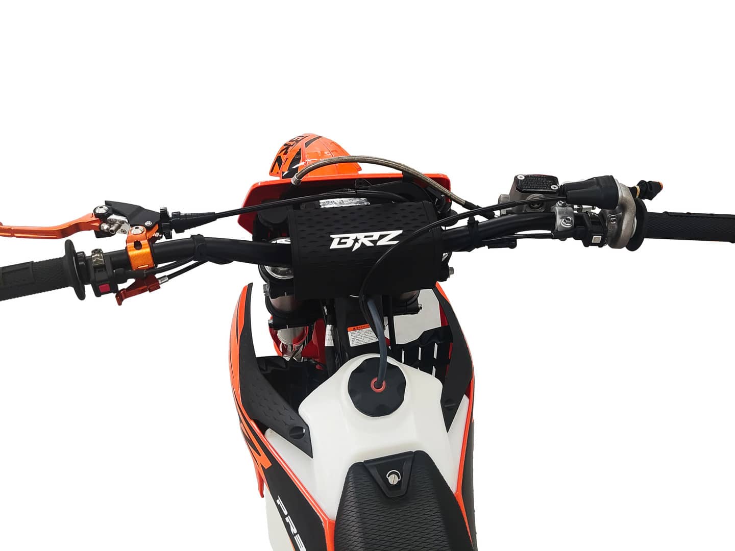 BRZ MX8 PR300 24 сочетает в себе практичность и современный дизайн в стиле KTM 2024 года. Мотоцикл укомплектован всем необходимым для первых выездов: мощная LED-фара, приборная панель, электростартер, защита рамы и тормозного диска, а также надежные «неломаемые» рычаги. Это идеальный выбор для тех, кто ищет неприхотливый, сбалансированный и уверенный в себе эндуро для активного отдыха и тренировок.