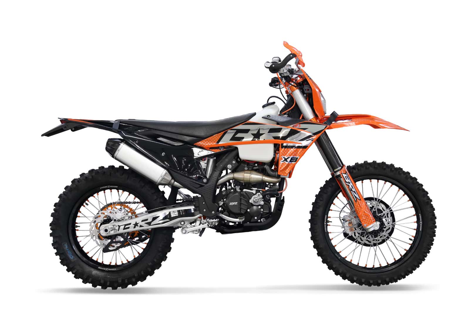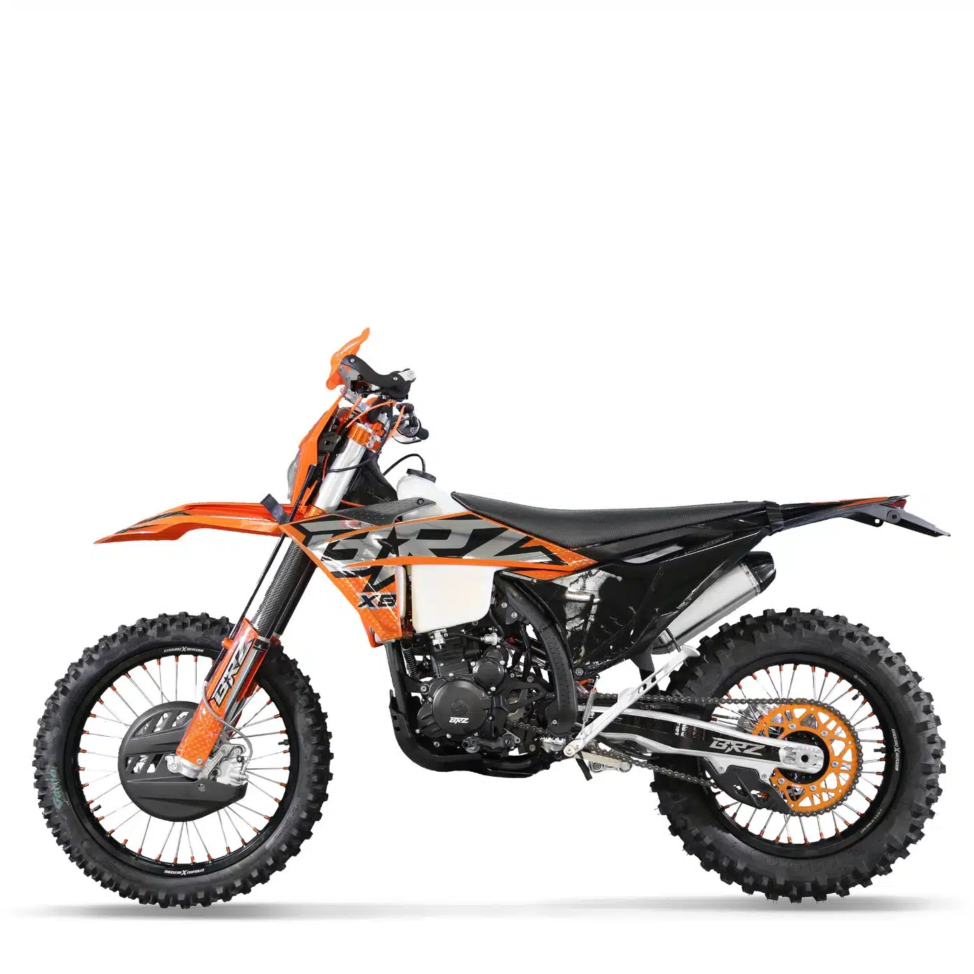 BRZ X8 NB300 24 – это современный полноразмерный эндуро-мотоцикл, построенный на новой раме с улучшенной геометрией, вдохновленной конструкцией KTM 2024 года. Оснащенный проверенным 280-кубовым двигателем Zongshen ZS174MN-5 (27 л.с.) с «косой» головой и карбюратором NIBBI PWK 34, он сочетает в себе надежность, тяговитость на низких оборотах и отличную приёмистость. 5-ступенчатая механическая коробка передач и электростартер делают его удобным для ежедневной эксплуатации и покорения бездорожья.