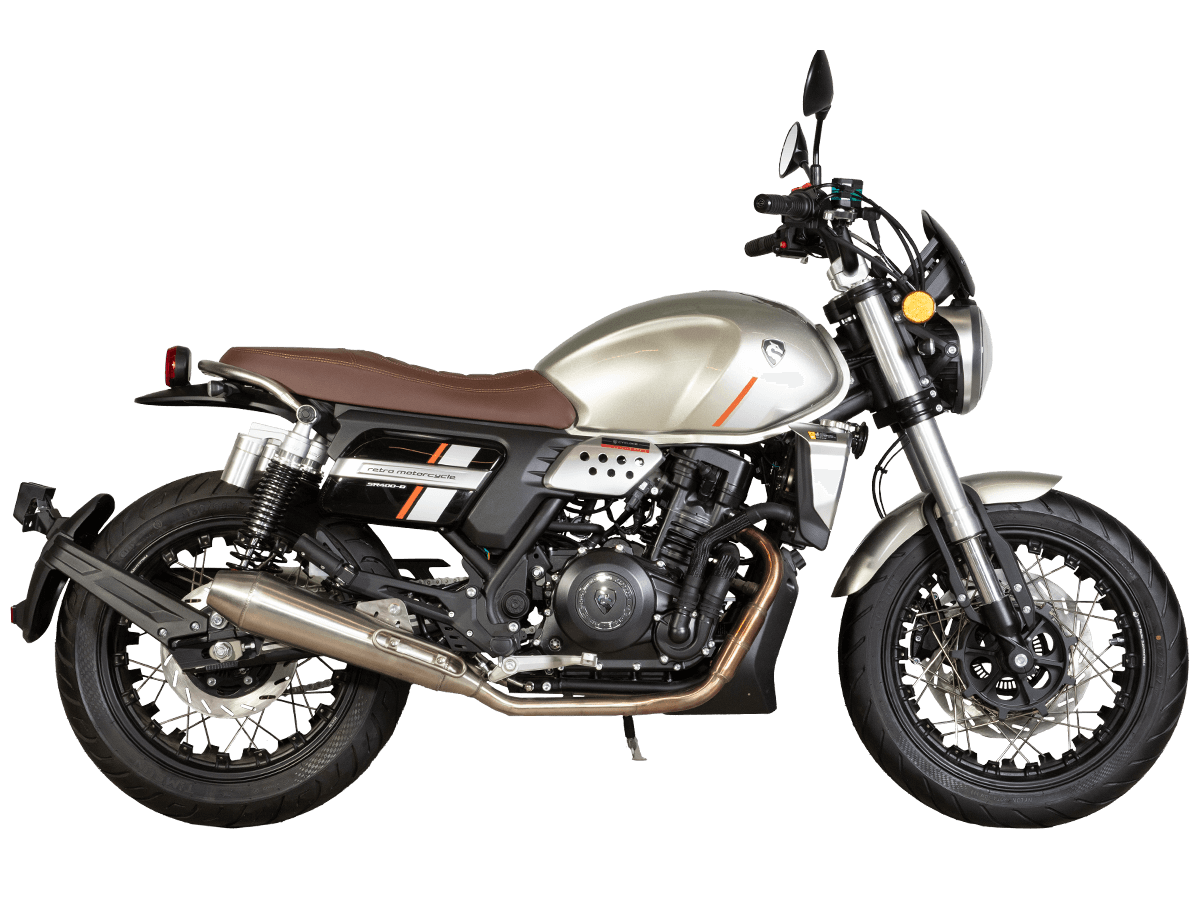 CYCLONE RE401 – современная интерпретация классического мотоцикла, сочетающая брутальный ретро-стиль с передовыми технологиями. В его основе – мощный 401-кубовый двухцилиндровый двигатель (43 л.с.) с жидкостным охлаждением и инжекторной системой Bosch, обеспечивающий уверенную динамику и топливную экономичность. Шестиступенчатая коробка передач, перевернутая телескопическая вилка и регулируемая задняя подвеска с двумя амортизаторами гарантируют комфортное управление, а дисковые тормоза с ABS – безопасность на любых дорогах.