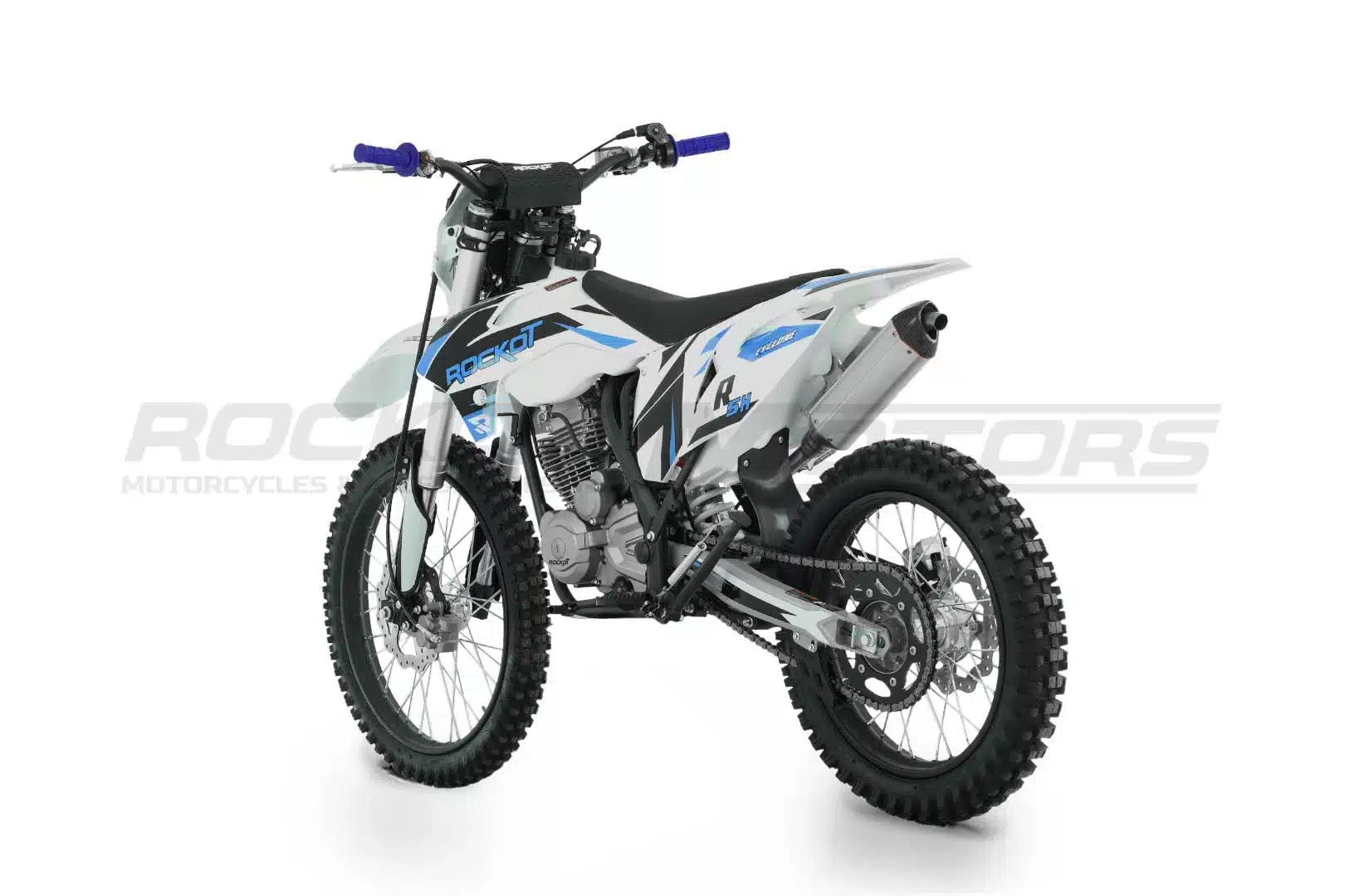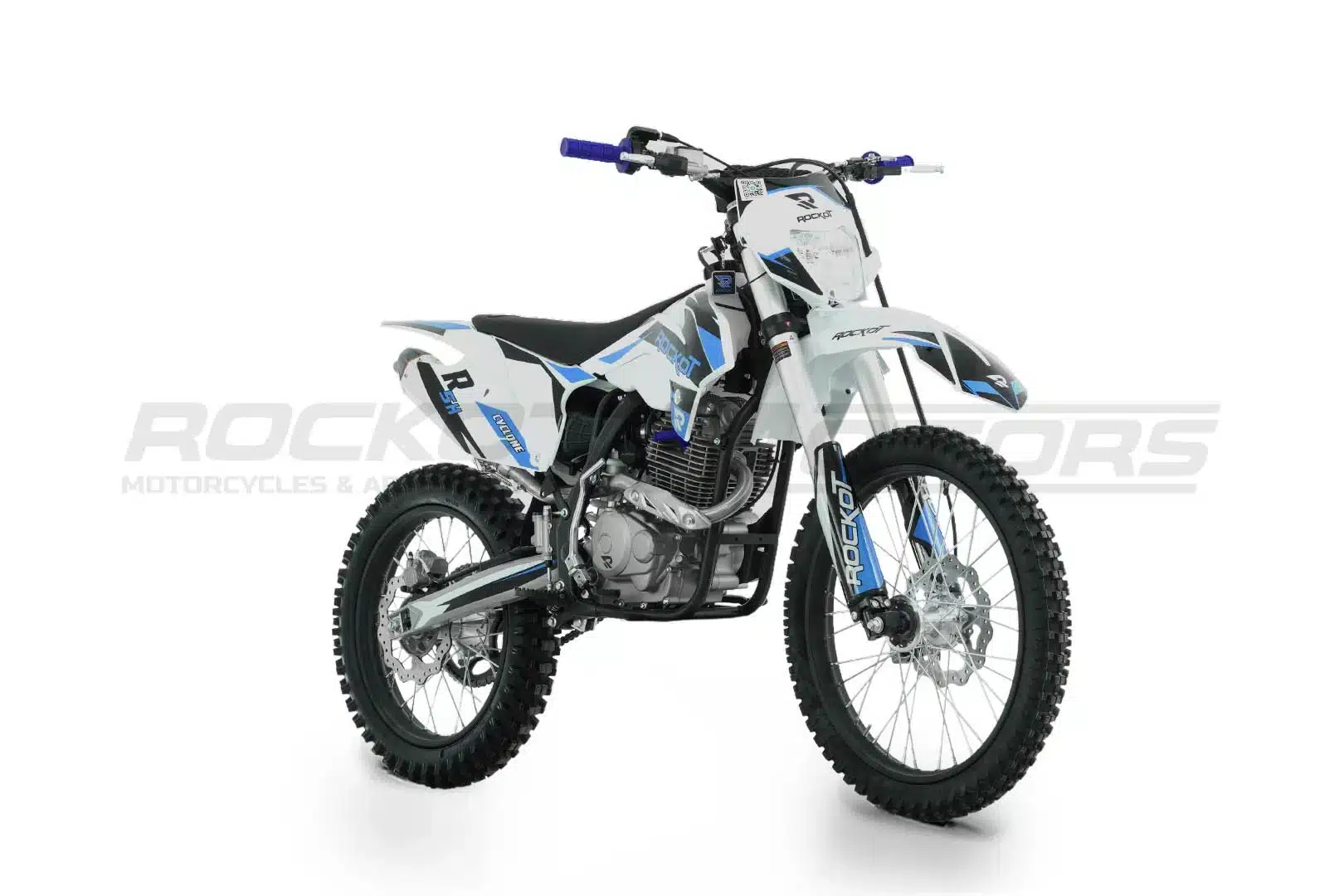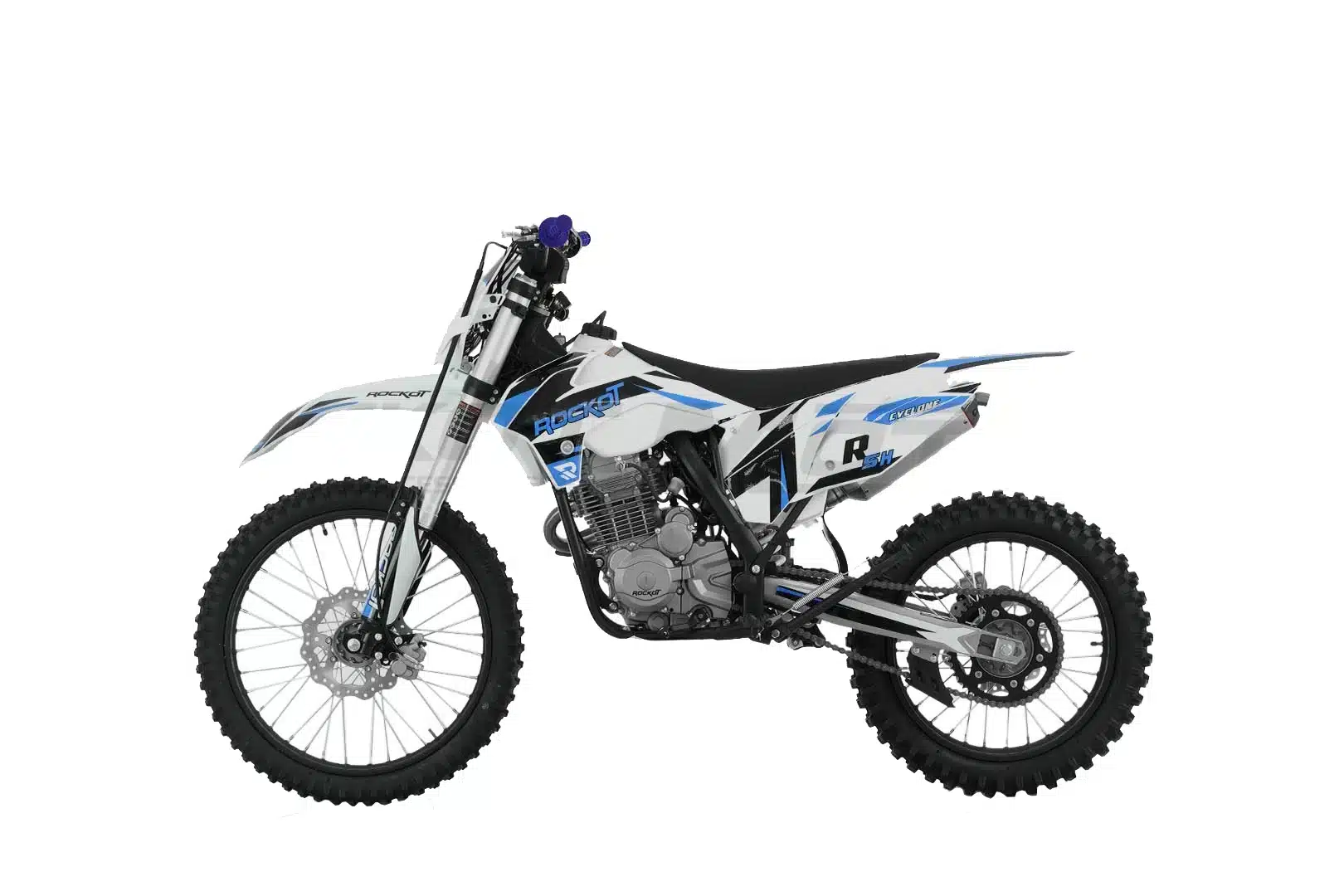 ROCKOT R5H Cyclone — это обновлённая и усовершенствованная версия популярной модели R5 Cyclone. Он получил более мощный и востребованный четырёхтактный двигатель CB250-F (172FMM) объёмом 249 куб. см, выдающий 21 л.с. Благодаря этому мотоцикл подходит не только начинающим, но и более опытным райдерам. При этом он остаётся доступным по цене и занимает нишу в бюджетном сегменте, уступая в стоимости даже более младшей модели R5F Raptor.