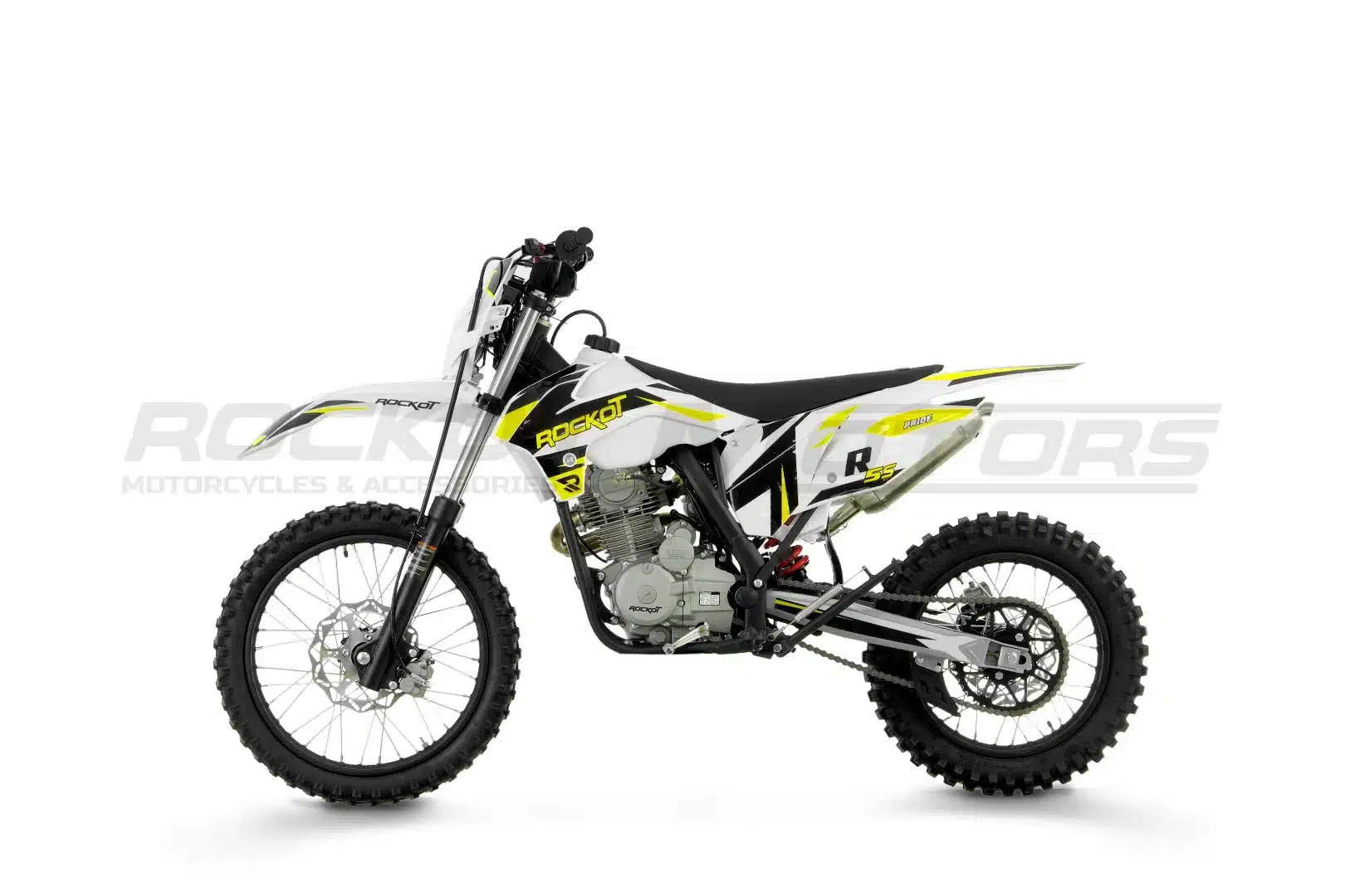Визуально ROCKOT R5S выделяется стильным пластиком в стиле KTM 2015, черной рамой и графикой в желто-белых тонах. Этот мотоцикл идеально подойдет тем, кто хочет перейти от питбайка к полноценному эндуро, не жертвуя управляемостью и комфортом.