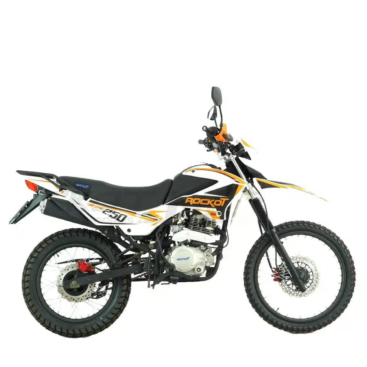 ROCKOT ZR250 – это доступный софт-эндуро мотоцикл 2024 года с дорожной регистрацией, созданный для любителей универсальной езды. С классическим дизайном, напоминающим японские эндуро 2000-х годов, он сочетает в себе проходимость внедорожника и комфорт дорожного байка. Мотоцикл предлагается в двух вариантах расцветки – черно-красной и черно-оранжевой, а его ключевыми особенностями являются металлический бак, удобное широкое сиденье и практичный стальной багажник.