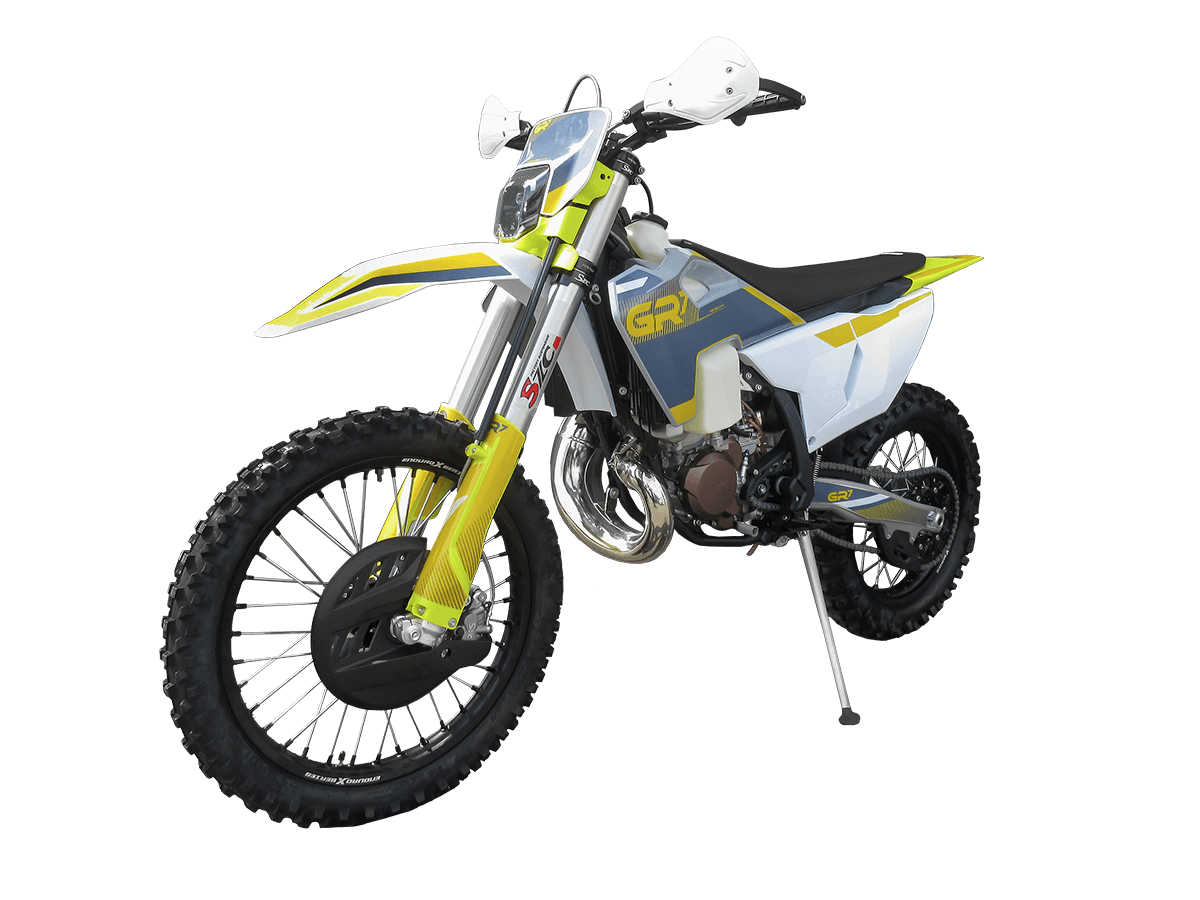 GR7 T300L Enduro Pro – это профессиональный двухтактный мотоцикл для экстремального эндуро и спортивных соревнований. Оснащенный 300-кубовым 2-тактным двигателем Loncin MT300 мощностью 44 л.с. с жидкостным охлаждением и модернизированным карбюратором OST PWK 38, этот мотоцикл демонстрирует взрывной характер и мгновенную реакцию на газ. 6-ступенчатая коробка передач в сочетании с облегченными алюминиевыми компонентами управления обеспечивает полный контроль в любых условиях.
