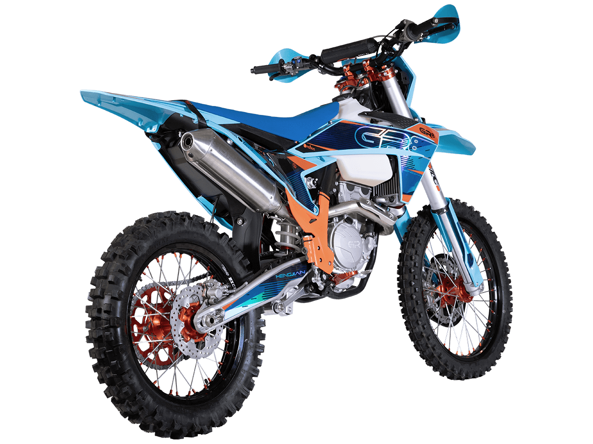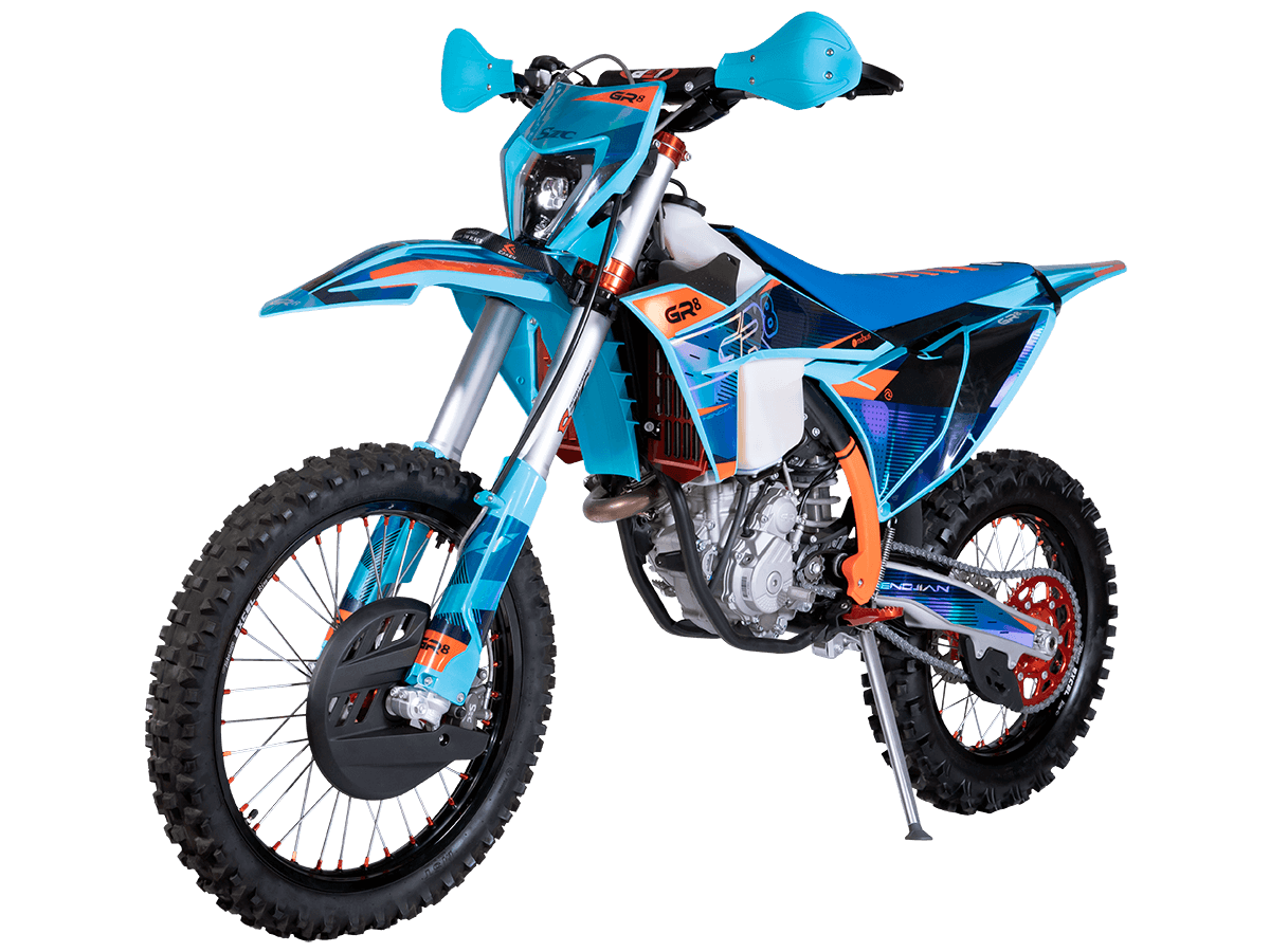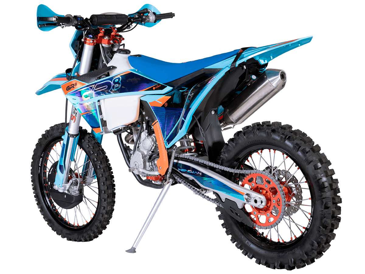 Мотоцикл получил профессиональную подвеску SZC PRO: 48-миллиметровую перевернутую вилку с открытым картриджем и регулируемый моноамортизатор, которые позволяют адаптировать поведение байка под любые условия трассы. Колеса 21/18 дюймов с прочными алюминиевыми ободами UNISON и агрессивным внедорожным протектором обеспечивают уверенное сцепление, а дисковые тормоза гарантируют точное торможение. При весе 118 кг и высоте по седлу 930 мм GR8 F250L остается маневренным и удобным для агрессивной езды.