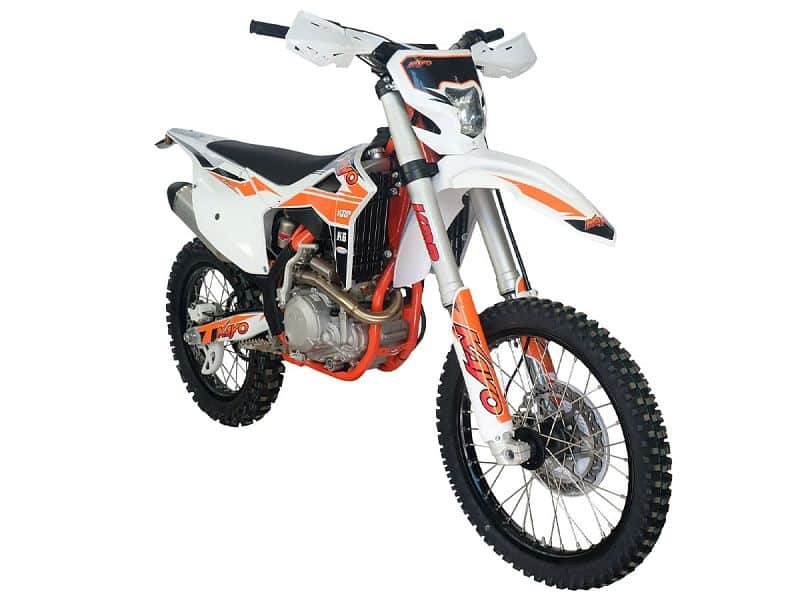 Эффективная система охлаждения с двумя радиаторами и вентилятором предотвращает перегрев мотора даже при длительных нагрузках. Подвеска Kayo Racing Performance, включающая перевернутую телескопическую вилку спереди и маятниковый рычаг с моноамортизатором сзади, обеспечивает отличную управляемость, сглаживая неровности рельефа.
