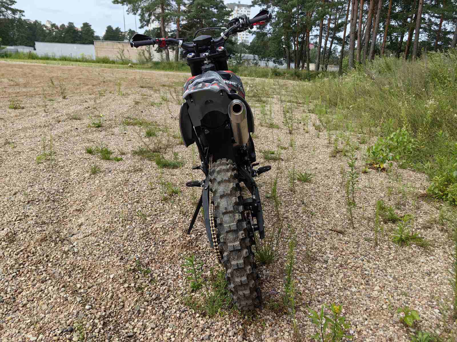 Мотоцикл отличается прочной конструкцией на раме K5: регулируемая 41-миллиметровая вилка спереди и воздушно-масляный амортизатор 450 мм сзади обеспечивают комфорт на неровностях. Дорожный просвет 330 мм и колеса 21/18 дюймов с покрышками Chaoyang обеспечивают отличную проходимость, а гидравлические дисковые тормоза – безопасность. При весе всего 107 кг и габаритах 1930×790×1010 мм байк остается маневренным и удобным для освоения внедорожной езды.