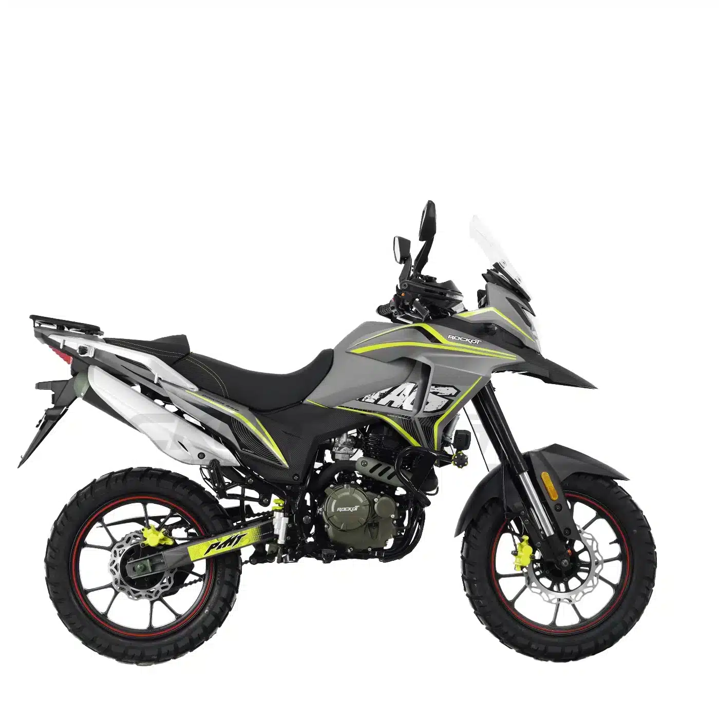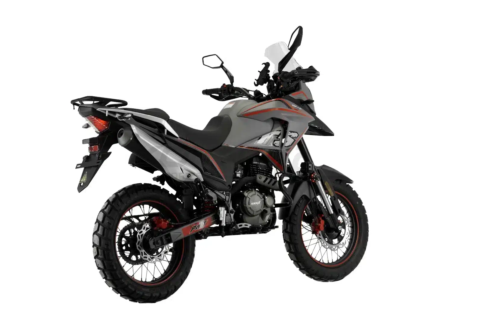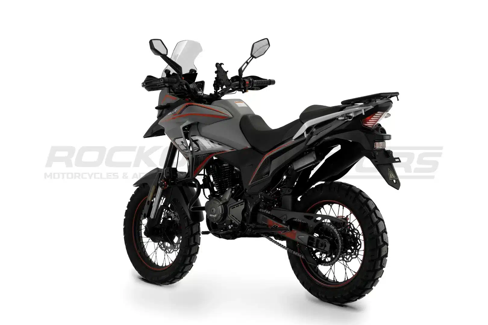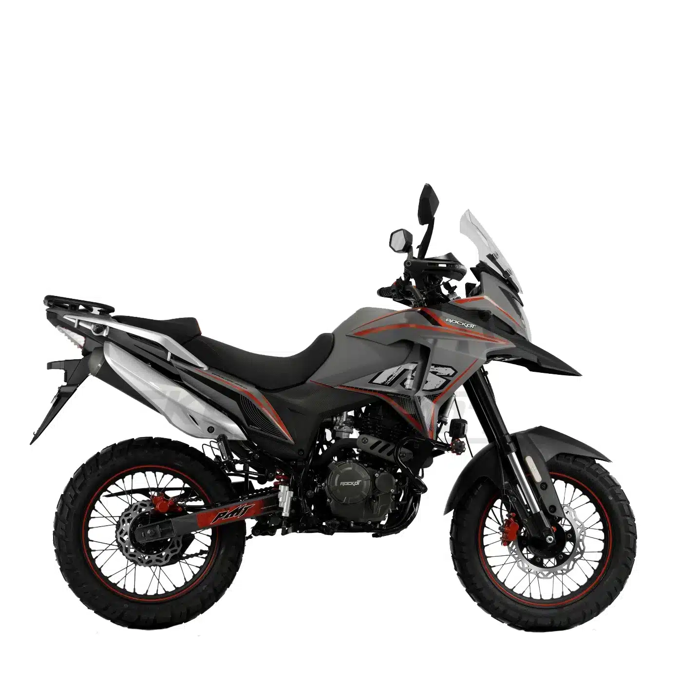 Новинка 2024 года ROCKOT DAKAR 250 создана для тех, кто мечтает о настоящих приключениях. Этот полноразмерный турэндуро сочетает в себе мощный 4-клапанный двигатель Loncin FE250 (25 л.с.) с 6-ступенчатой коробкой передач и воздушно-масляным охлаждением. Агрессивный дизайн с ветровым стеклом, LED-оптикой и матовой серо-красной расцветкой делает мотоцикл узнаваемым на любой дороге.