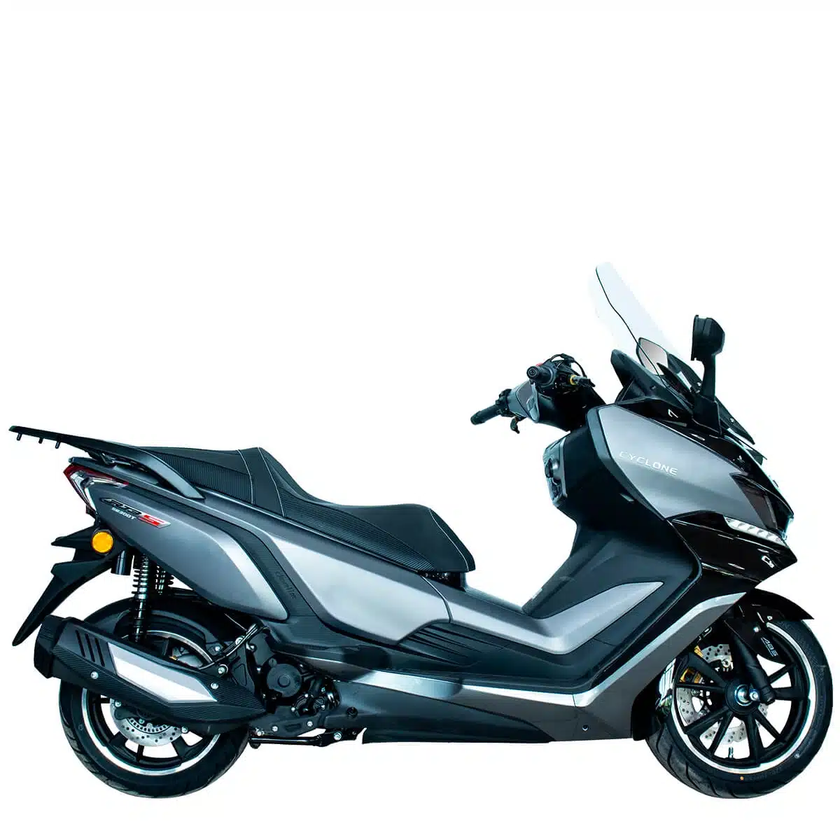 CYCLONE RT3S – это премиальный максискутер для комфортного передвижения по городским улицам и загородным трассам. Оснащенный мощным 289-кубовым 4-тактным двигателем (25 л.с.) с жидкостным охлаждением и инжекторной системой BOSCH, он сочетает в себе динамику мотоцикла с удобством скутера. Вариаторная трансмиссия обеспечивает плавный разгон, а система ABS на обоих колесах гарантирует безопасность при любых дорожных условиях. С 17-литровым баком и экономичным расходом топлива RT3S идеален для дальних поездок.