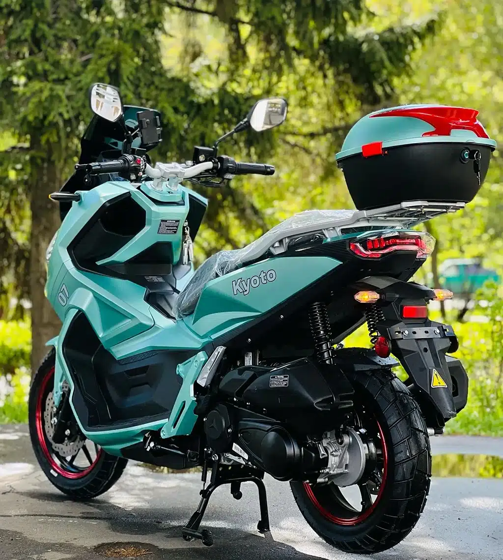 GT KYOTO – современный городской скутер, сочетающий в себе надежность, экономичность и комфорт. Оснащен 180-кубовым инжекторным двигателем мощностью 15 л.с., который обеспечивает плавный разгон до 90 км/ч при оптимальном расходе топлива. Воздушная система охлаждения в сочетании с механической КПП гарантирует безотказную работу в любых условиях эксплуатации, а задний привод обеспечивает стабильность на дороге.
