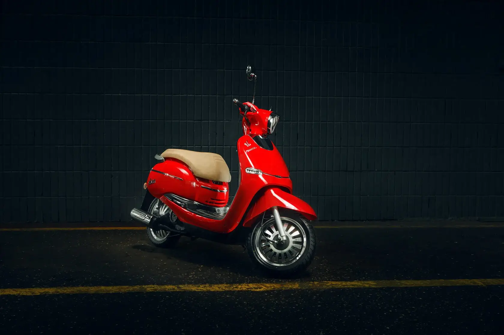 Передняя телескопическая вилка и задняя подвеска с двумя амортизаторами эффективно гасят неровности дороги. Надежные тормоза – дисковый передний и барабанный задний – обеспечивают безопасность и уверенность при торможении. Доступен в двух цветах – красном и сером.