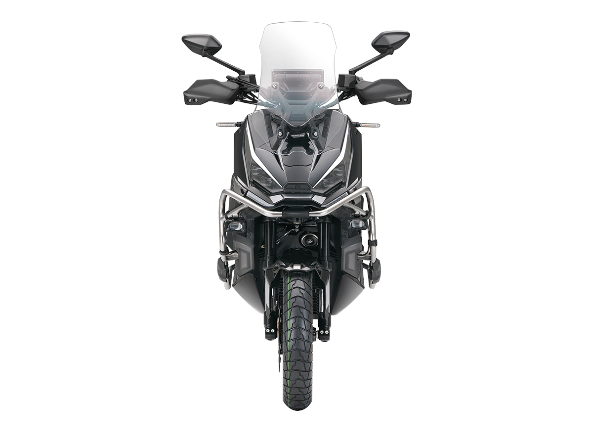 Конструкция скутера адаптирована для различных типов покрытий: 17-дюймовое переднее колесо и перевернутая телескопическая вилка обеспечивают устойчивость на бездорожье, а гидравлические амортизаторы сзади смягчают неровности. Тормозная система J.JUAN (Brembo Group) с двухканальной ABS обеспечивает контролируемое торможение. Технологичное оснащение включает LED-оптику, TFT-дисплей с мультимедийными функциями, 2 USB-порта и датчики давления в шинах.
